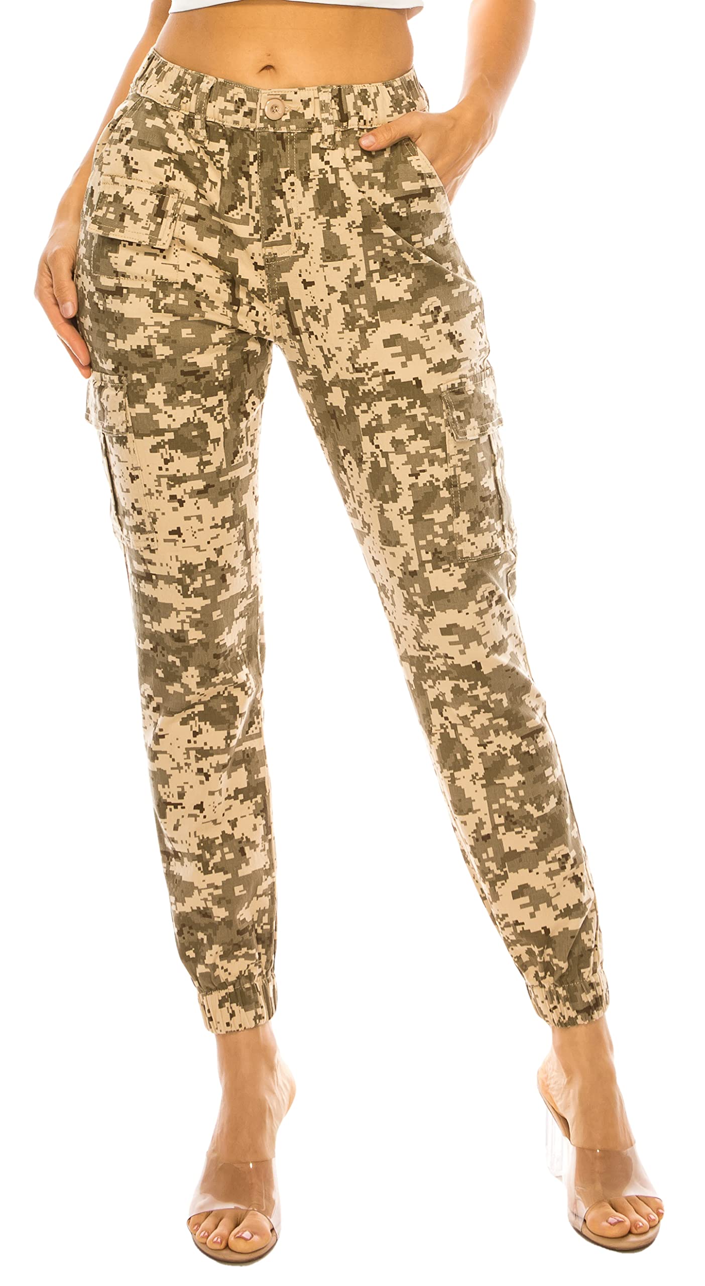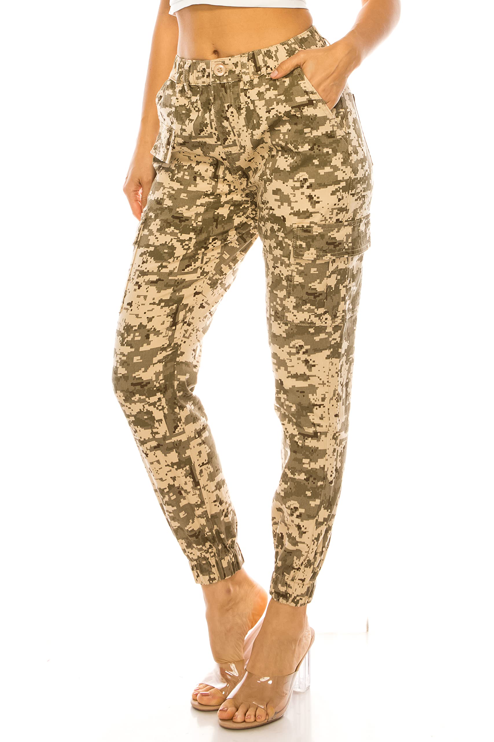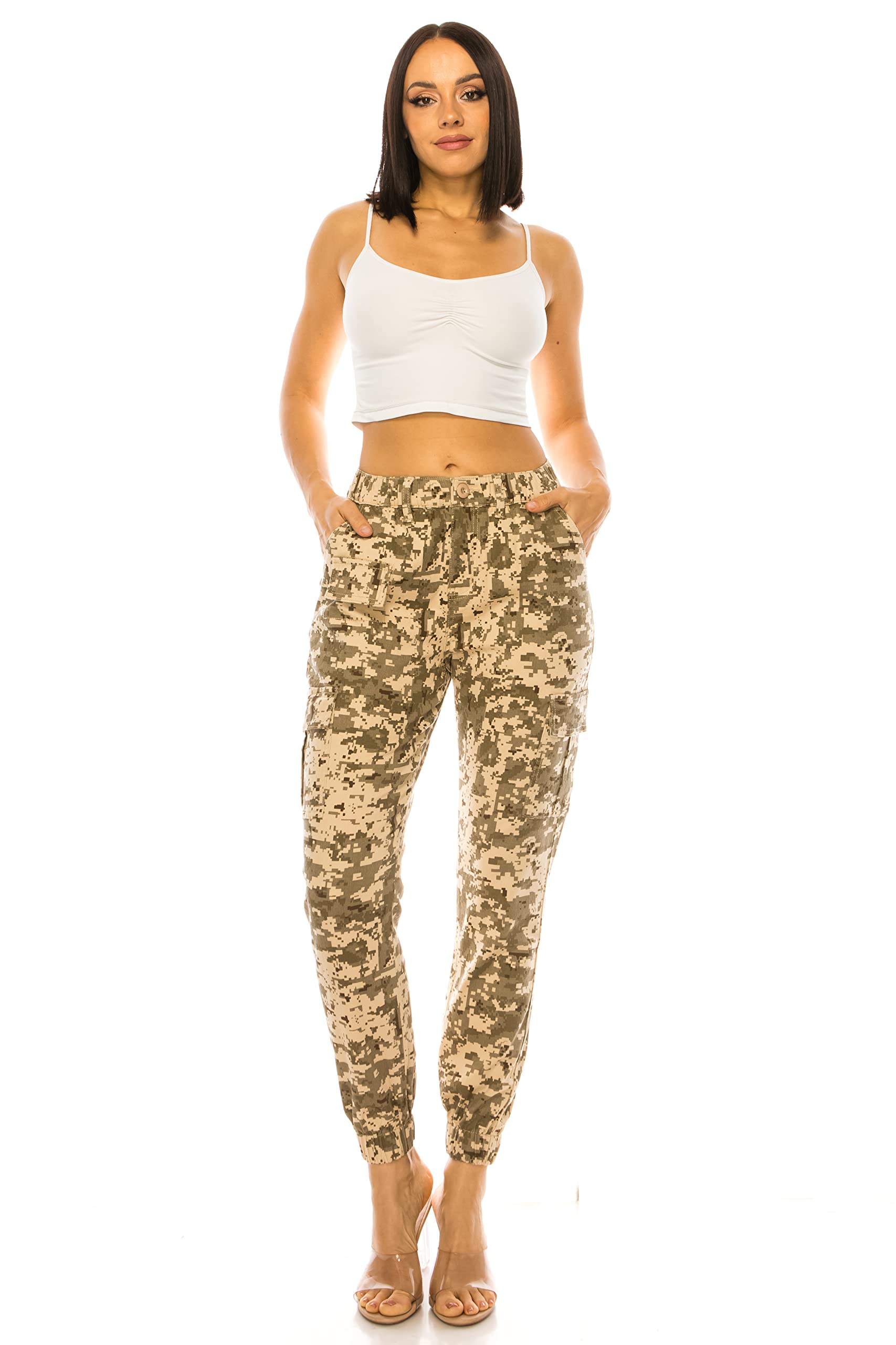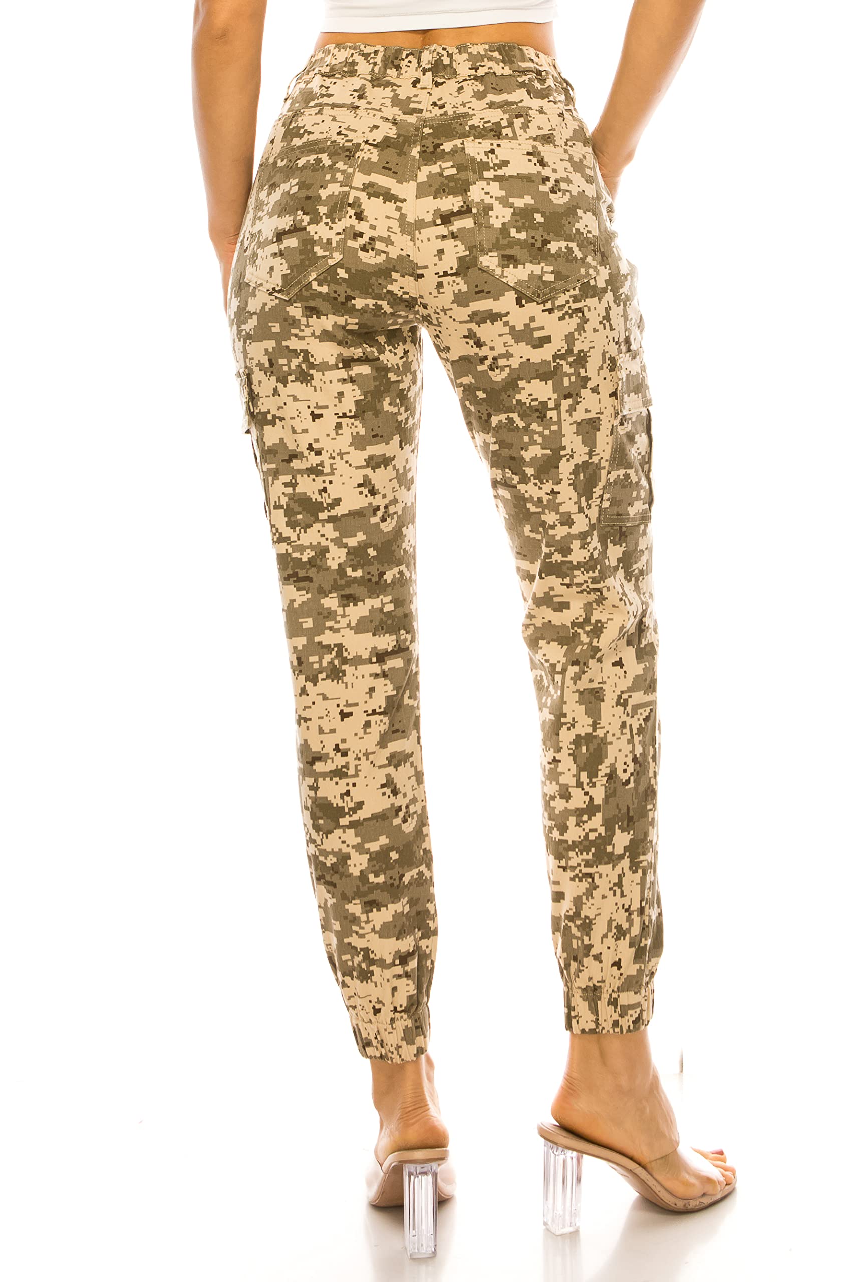 Double Denim January 5th Women's High Waist Cargo Jogger Pants Casual Elastic Waistband Tapered Sweatpants with 6 Pockets SCP-2049 Digital Beige Camo S