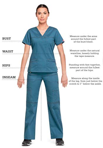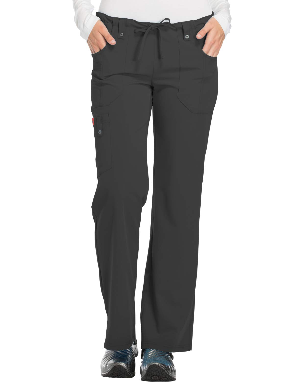 Details: A Contemporary fit, mid rise, moderate flare leg pant features an adjustable drawstring with full elastic waist, and belt loops with decorative logo eyelet detail. Also featured are two patch pockets with pen slots in the right pocket, and a cargo pocket with self loops and logo eyelet. A back leg seam gives a flattering shape, and a back pocket and side vents complete the look. Inseam: 30 1/2".