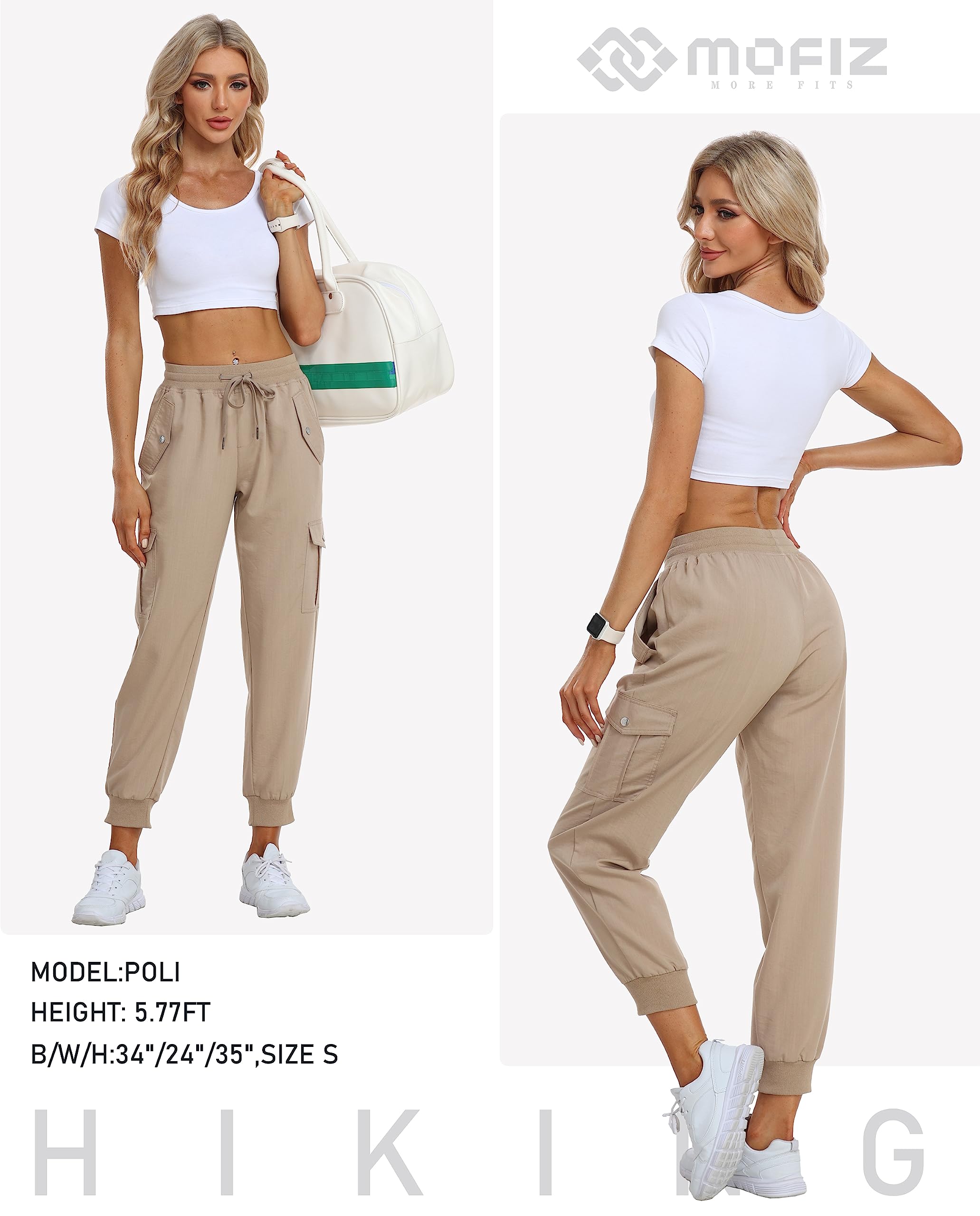 Details: MoFiz Womens Hiking Cargo Pants are made of lightweight, quick-dry, breathable, micro-elastic fabric. Multi-function pocket and elastic belt pull rope design bring you comfortable and flexible wear experience. Sports leisure design is suitable for all occasions, such as travel, hiking, running, camping, mountain climbing, fishing, hunting, Joggers or casual wear.