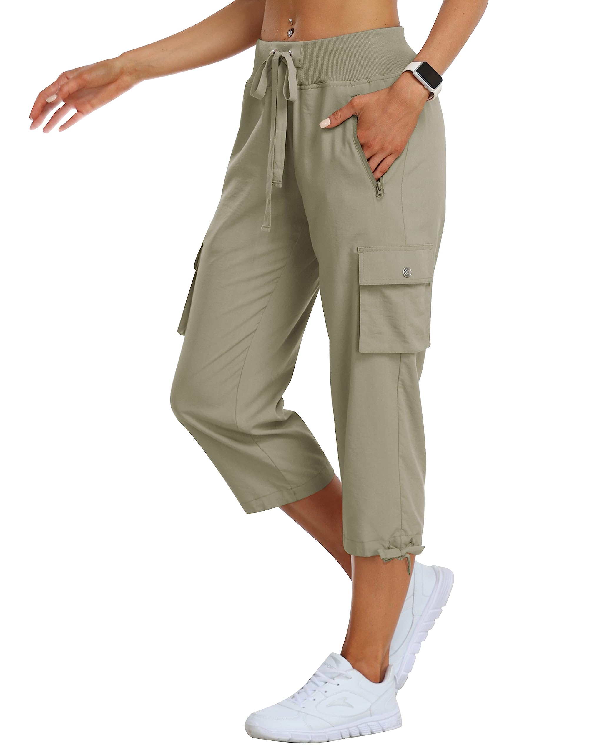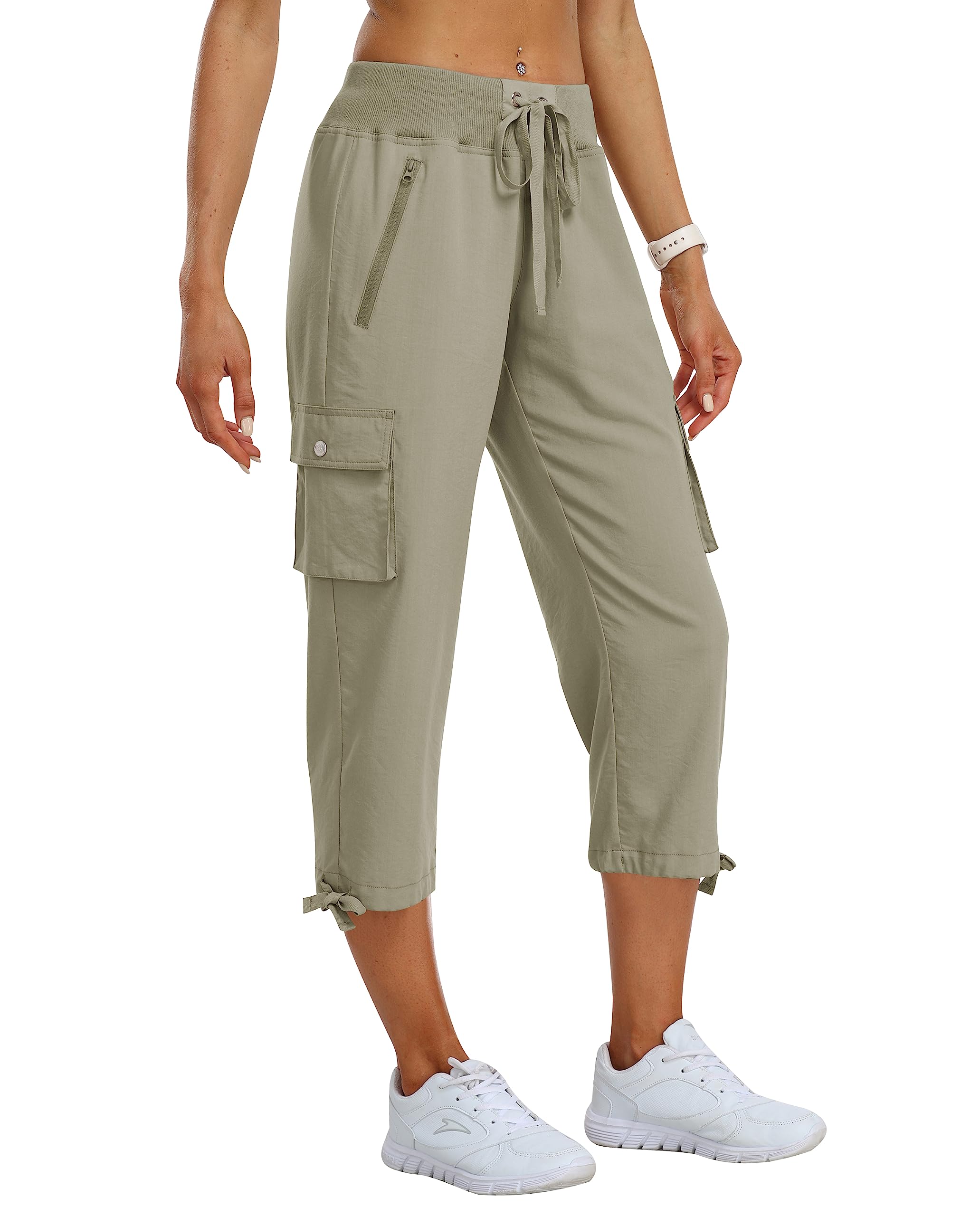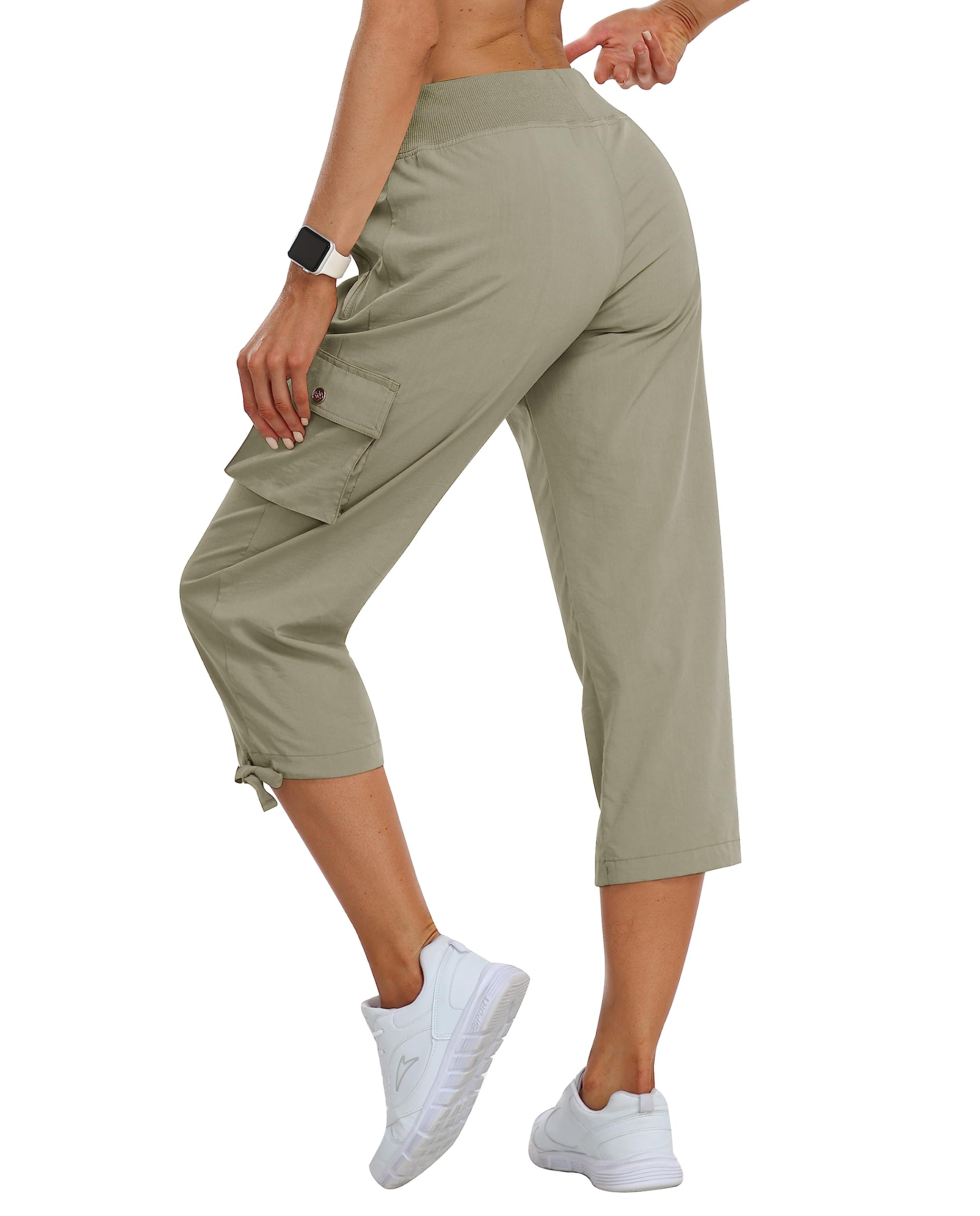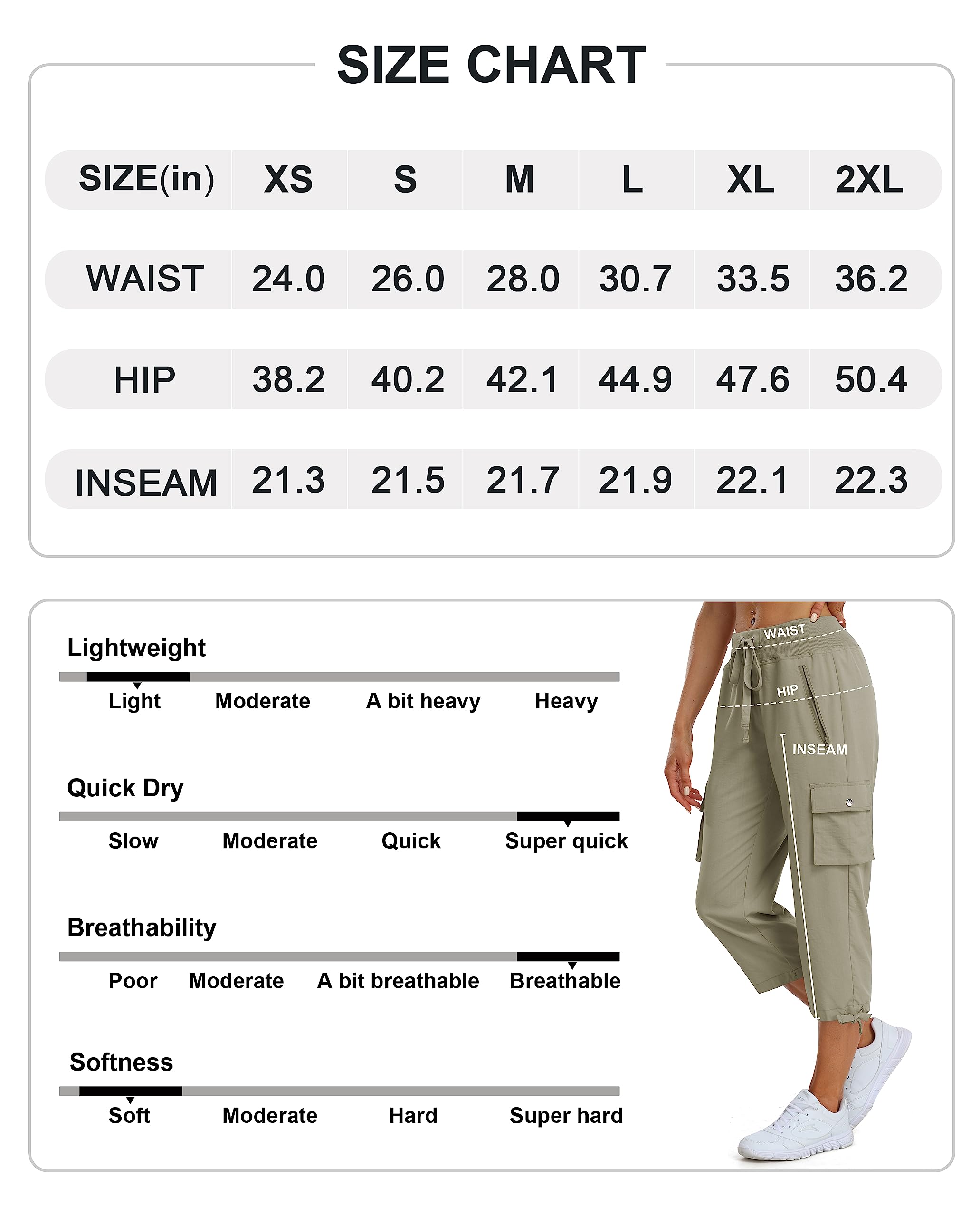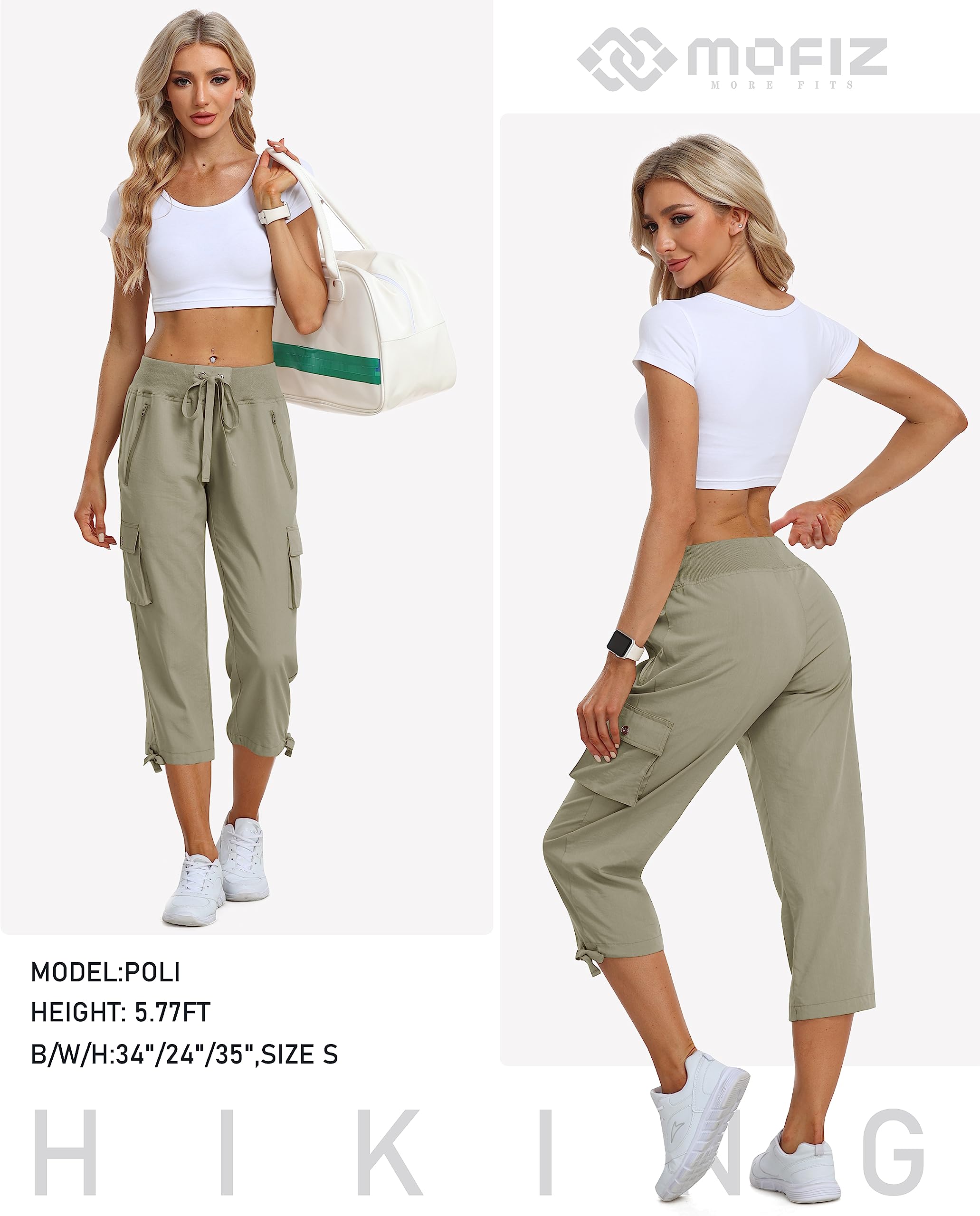 Details: MoFiz womens capris hiking cargo pants are made of lightweight, quick-drying, breathable, micro-elastic fabric. Multi-function pocket and elastic belt pull rope design bring you comfortable and flexible wear experience. Sports design is suitable for all occasions, such as travel, hiking, camping, mountain climbing, fishing, hunting or casual wear