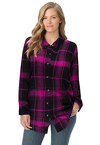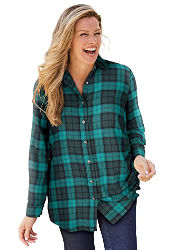 Details: This cotton flannel is brushed to perfection for cozy comfort. A collar, button cuffs and button front add to the classic appeal. Made in a perfect tunic length that falls over the hips. Shirttail hem 30” tunic length Pure cotton, imported Machine washable