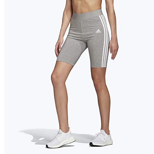 adidas Women's Must Haves 3-Stripes Cotton Short Tights Medium Gray Heather/White Small