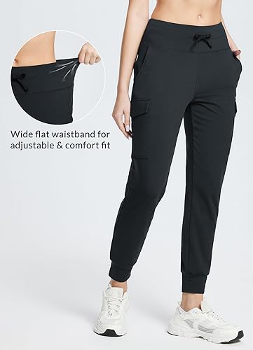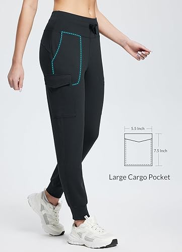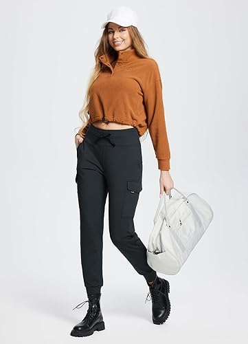 BALEAF Women's Fleece Lined Jogger Pants Hiking Water Resistant Thermal High Waist Cargo Pockets Travel Winter Black M