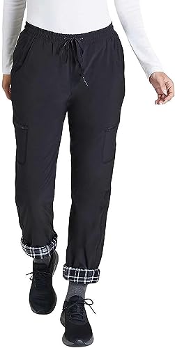 Eddie Bauer Women's Stretch Fleece Lined Polar Pant (12, Black/Plaid)