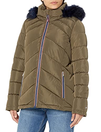 Details: This TOMMY HILFIGER womens OUTERWEAR JACKET is a SHORT PUFFER CONTRAST ZIPPER FUR HOOD short jacket