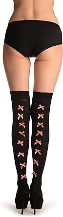 LissKiss Black With Champagne Pink Satin Bows At The Back - Over The Knee Socks