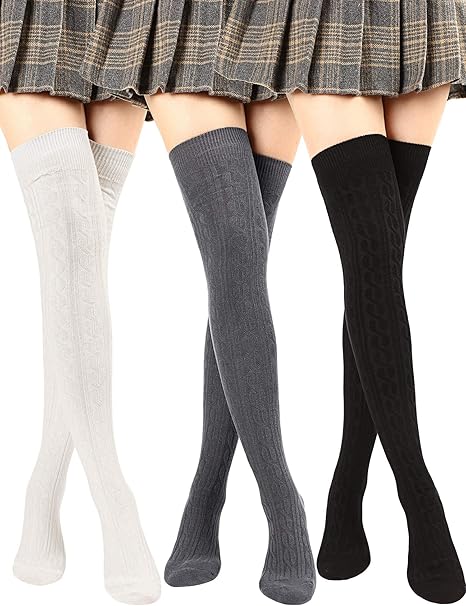 SATINIOR 3 Pairs Thigh High Socks Over Knee Socks Cotton Thigh High Knit Boot Stockings