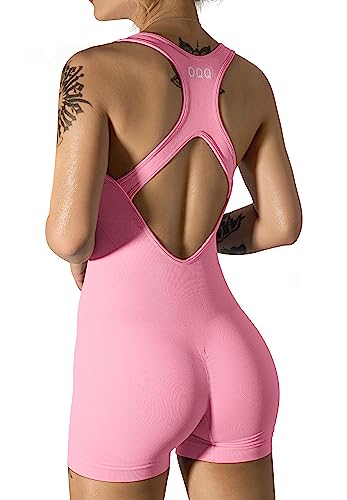 Women's Yoga One Piece Sleeveless Backless Padded Sports Tank Exercise Bra Romper, Pink, Large