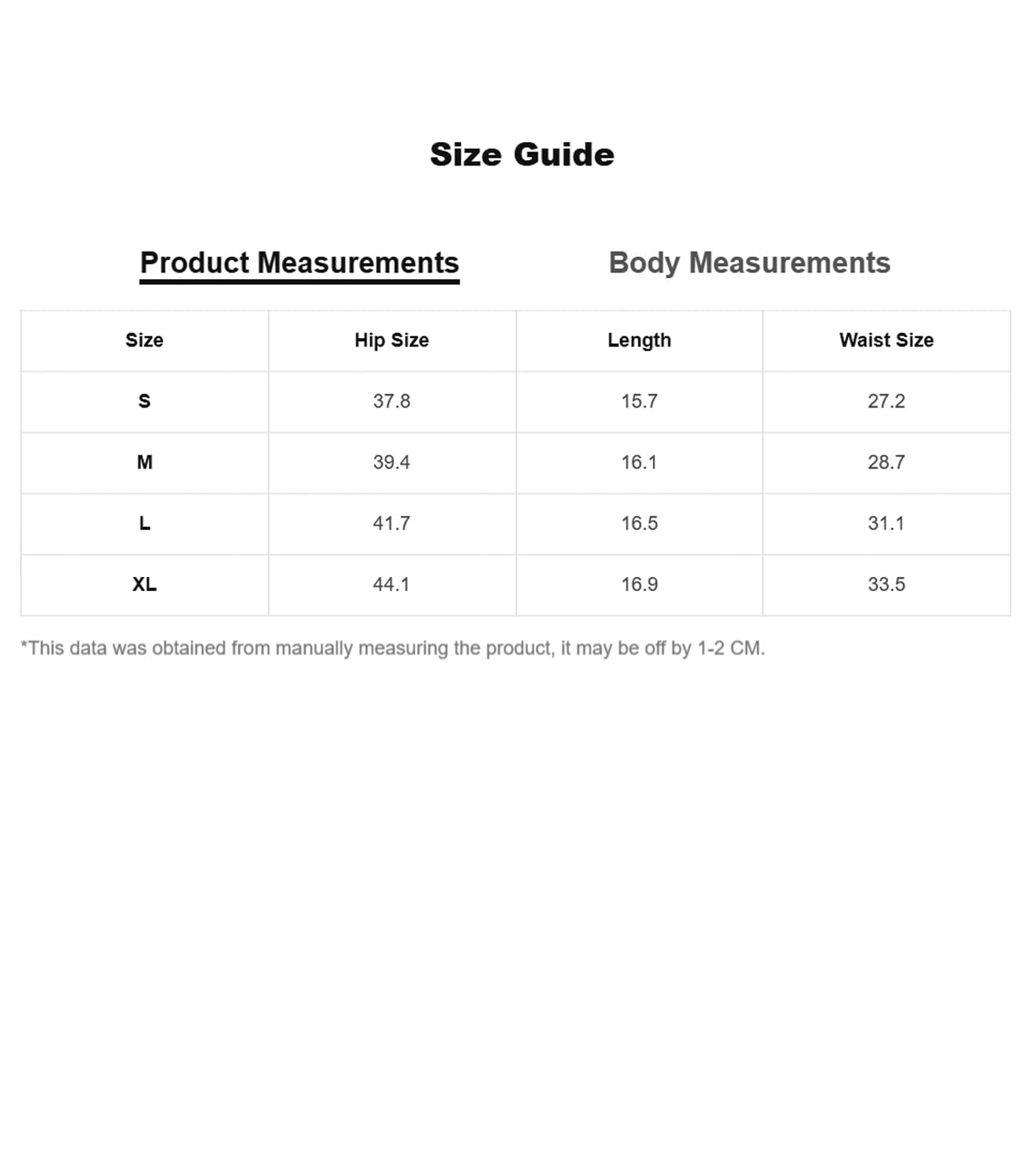 Small: Hip Size: 37.8", Length: 15.7", Waist Size: 27.2"