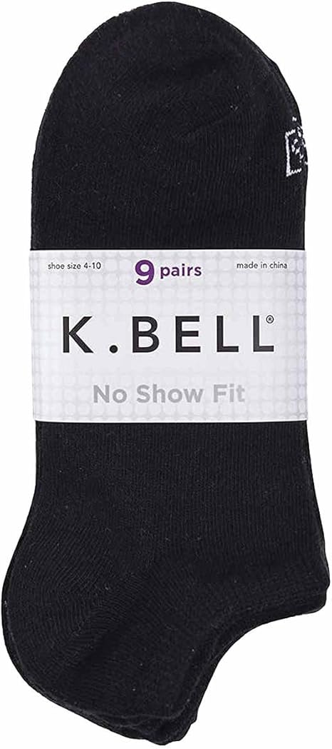 K. Bell Women's No Show Socks (Pack of 9 Pairs) No-Slip Pocket Heel