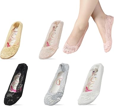 LilRoot Women Invisible Socks Cushion Footlets Non-Slip Size 9-11 Lace Sock-Free for Heels Flats No-Show Socks - 5 Pairs