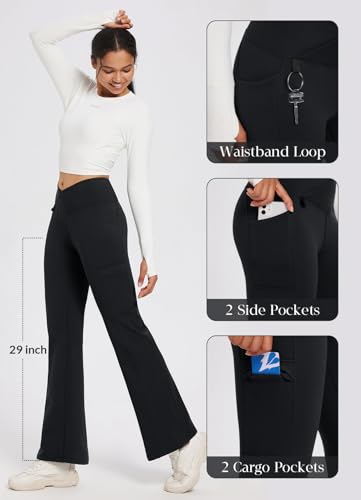 • Slightly Flare & Cross-Waist: 29" Inseam slightly flare leggings with V crossover waist making it more stylish, flattering. Slightly flare Leg effectively helps hide the defects of the calf, and creates the contour and slender appearance of the popular line.