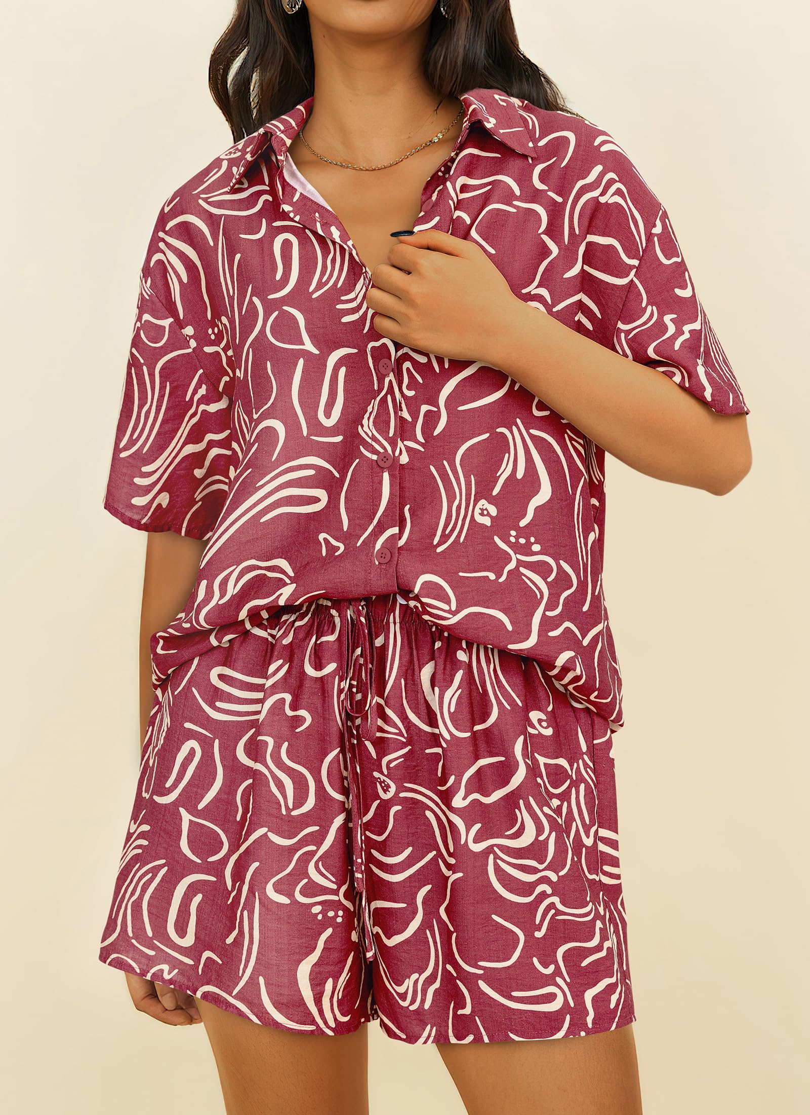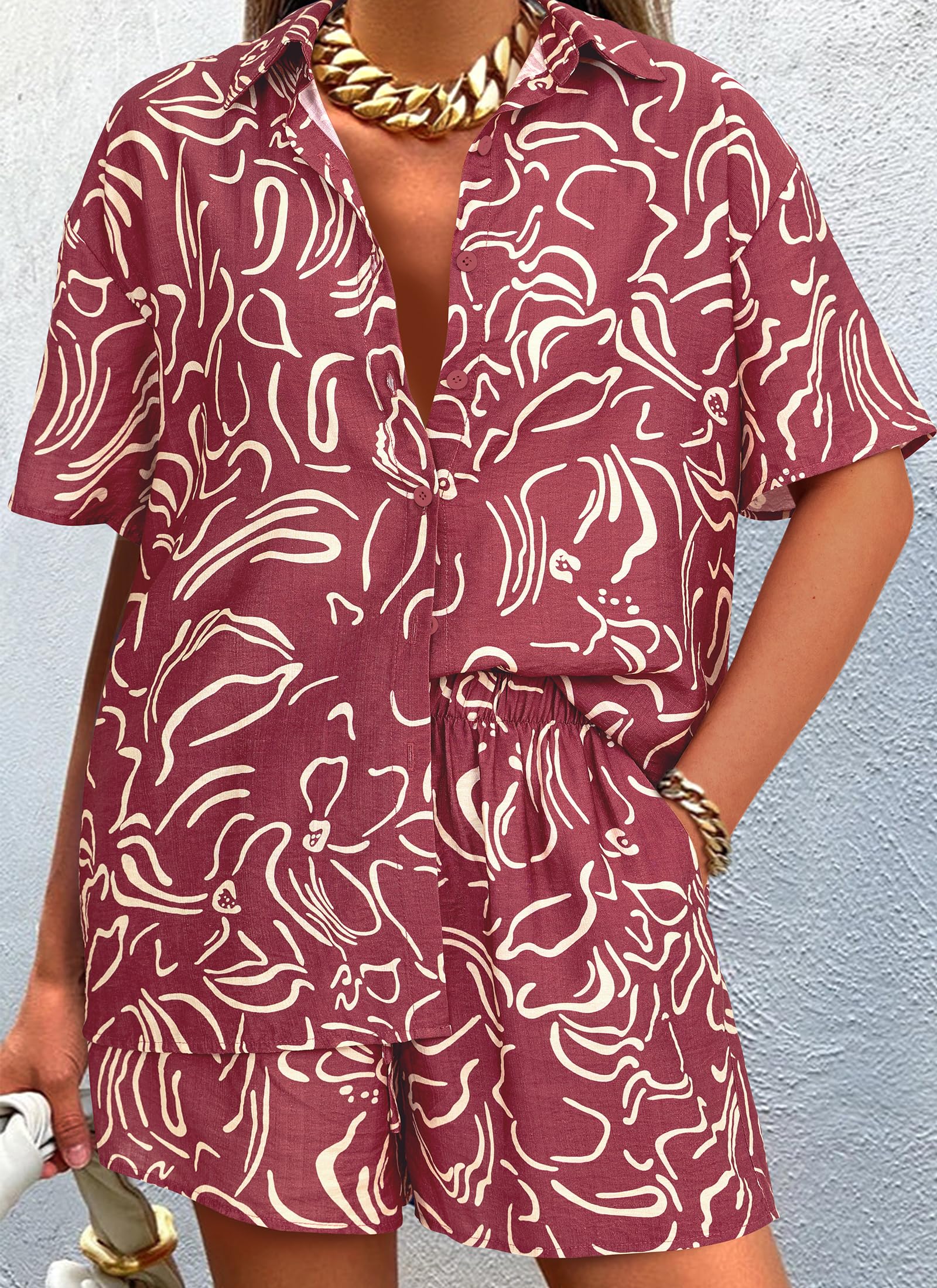 • EYE-CATCHING DESIGNS: Two Piece Outfits for Women Summer/ Summer Sets/ Womens Tracksuits/ Womens Matching Sweatsuit/ Button Down Blouse for Women Dressy/ V Neck Tops/ Collared Blouse/ High Waisted Shorts/ Wide Leg Shorts/ Lounge Shorts with Pockets/ Printed Outfits