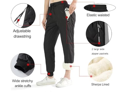 XiaoLongRen Women's Winter Warm Pants Fleece Ski Snow Pants Sherpa Lined Thermal(XLR-WFP-XLR709Black-L)