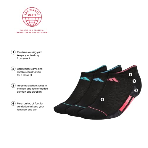 Details: Refresh your training sock supply. These women's adidas no-show socks are made of lightweight yarn for a barely-there feel. Mesh on the top of the foot keeps the air circulating to move heat away from you. They come in a pack of three.