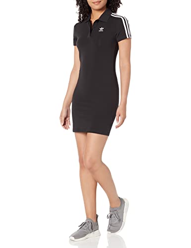 Details: This women's dress combines the comfort of your favorite cotton t-shirt with an elongated style you can wear anywhere. It has a loose, relaxed shape and a full dose of adidas attitude on the back. The ribbed crewneck adds to the sporty look.