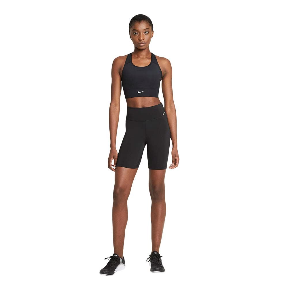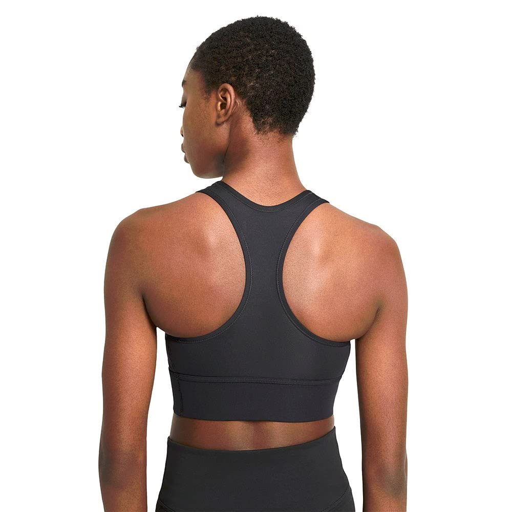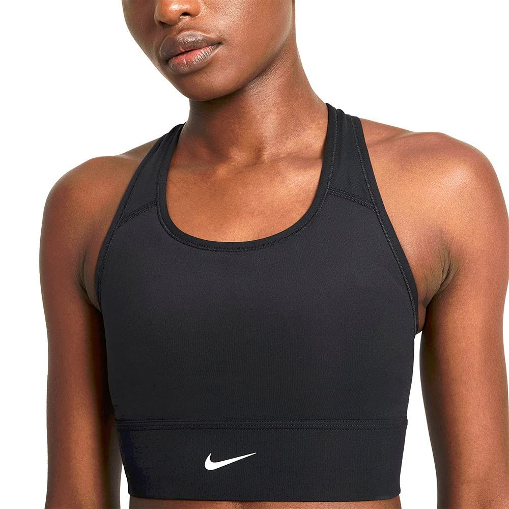 Details: The Nike Swoosh Sports Bra gives you all the coverage of a longer length with the flexibility of a racerback design. It's made from at least 50% recycled polyester with plenty of stretch to keep you moving naturally. A removable 1-piece pad slips in from the top to make life easy.