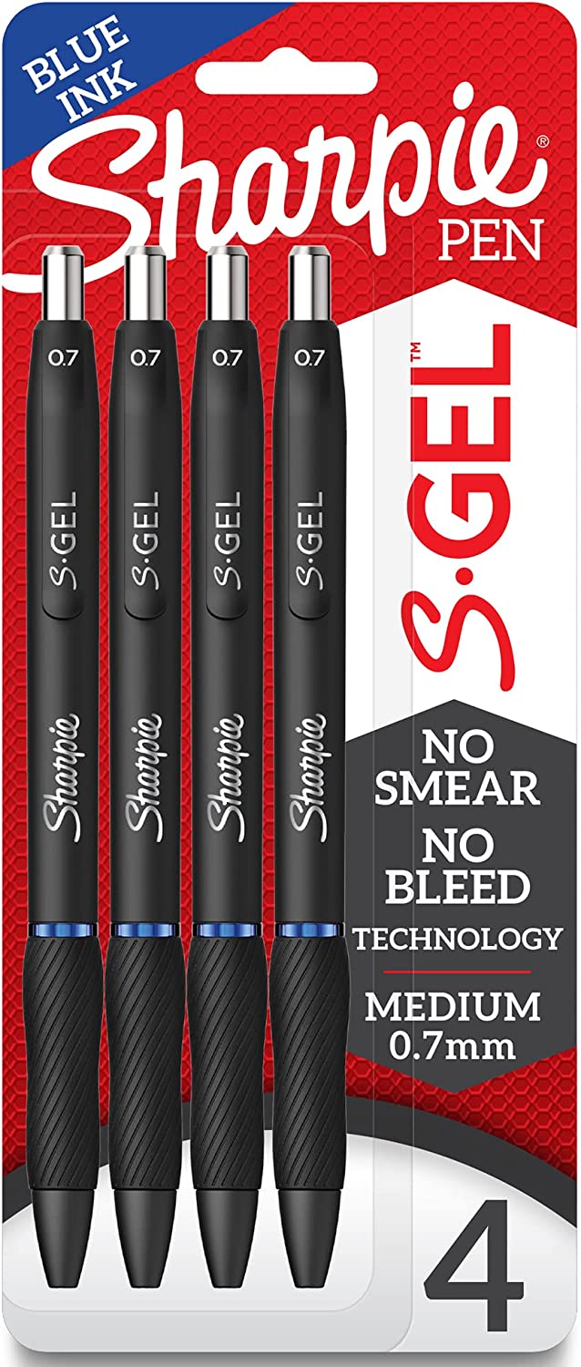 SHARPIE S-Gel, Gel Pens, Medium Point (0.7mm), Black Ink Gel Pen, 4 Count