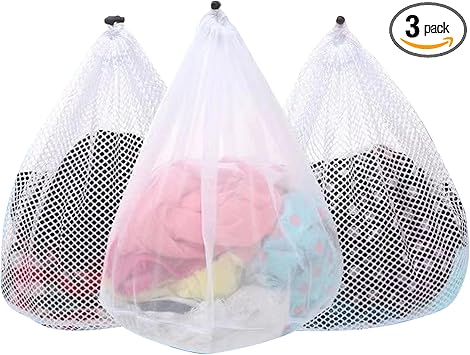 3Pcs Mesh Laundry Bags Washing Machine Mesh Wash Bags Jumbo for Delicates Clothes, Bed Linen, Toys with Drawstring Closure Sturdy(3 XXLarge 28 x 26 Inches)