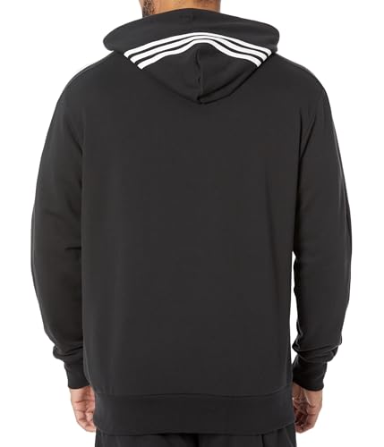 adidas Men's Standard Essentials French Terry 3-Stripes Hoodie, Black/White, Medium
