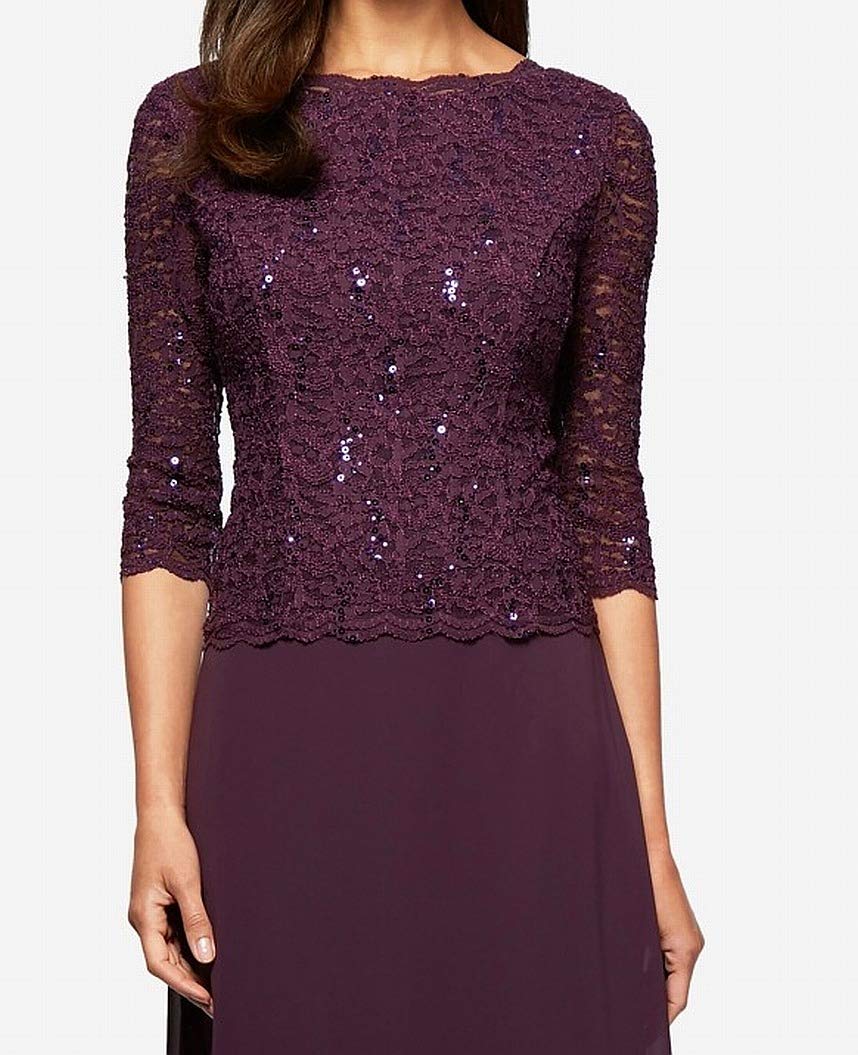 Alex Evenings Women's 3/4 Sleeve Stretch Lace Bodice Mock One Piece Gown, Deep Plum, 14P