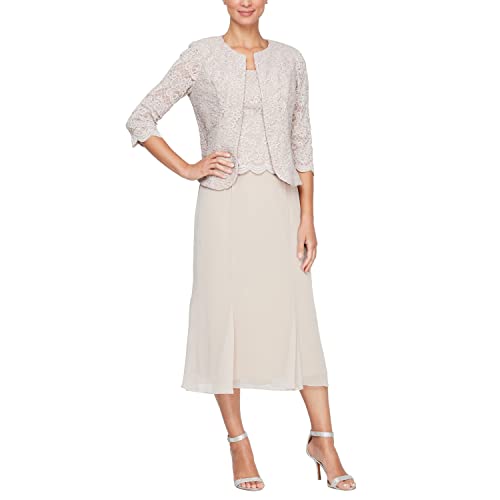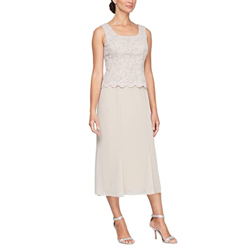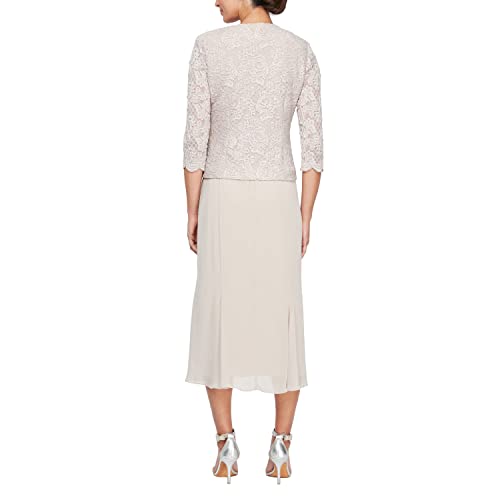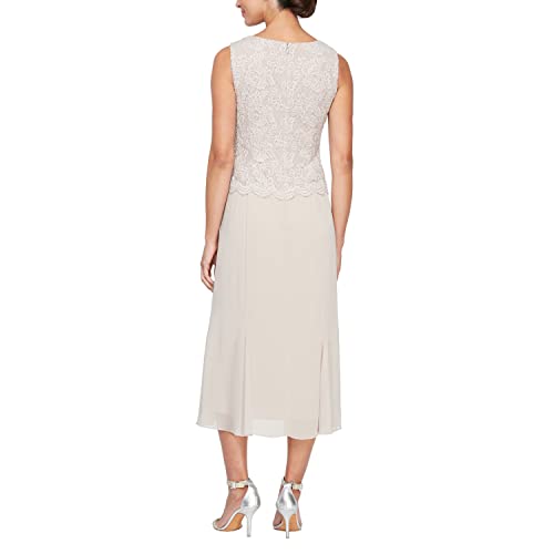 Alex Evenings Women's Tea Length Dress, Perfect for Weddings, Formal Events (Petite and Regular Sizes), Taupe Buttonless Jacket, 16