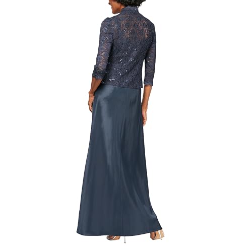 Alex Evenings Women's Two Piece Dress with Lace Jacket (Petite and Regular Sizes), Midnight, 18