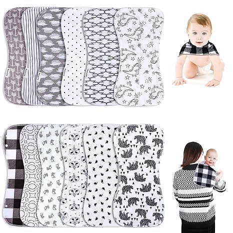 Baby Burp Cloths & Baby Bibs 2-in-1 Design Large Size 3 Layers Thicken 100% Cotton Super Absorbent and Soft Baby Spit Up Burping Rags Baby Burp Cloth Set for Boys and Girls 12 Pack