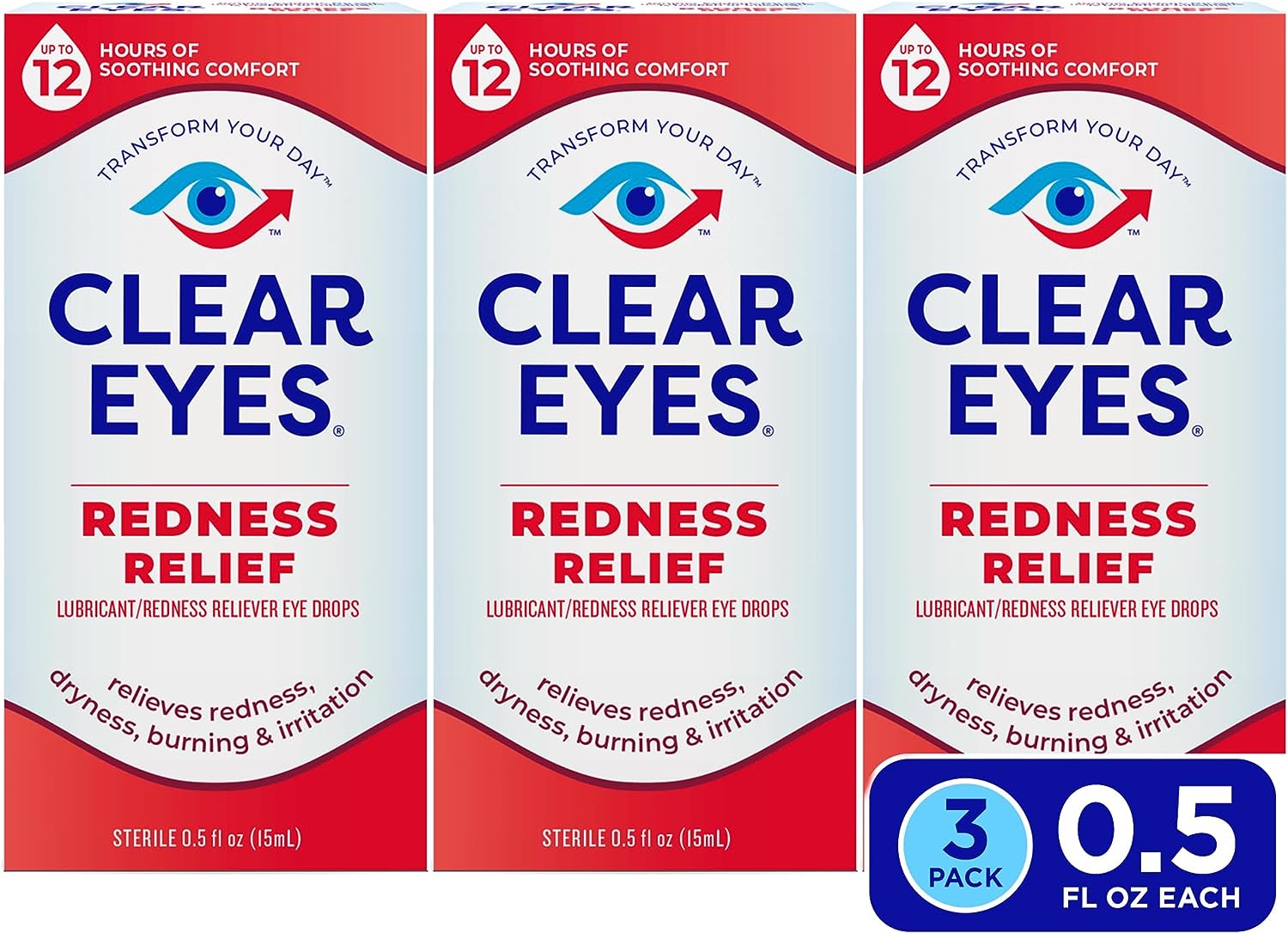 Clear Eyes Redness Eye Relief Eye Drops, 0.5 Fl Oz, Pack of 3
