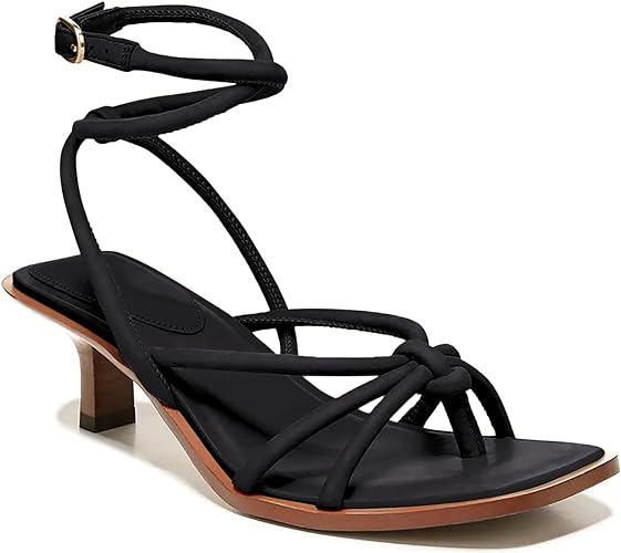 Coutgo Womens Strappy Heels Sandals Thong Gladiator Square Open Toe Low Kitten Heeled Criss Cross Ankle Strap Summer Dress Wedding Shoes