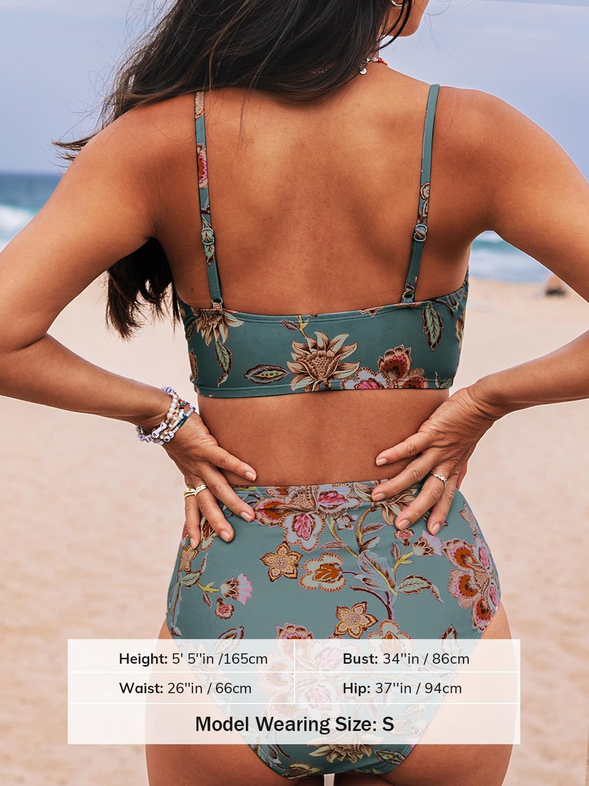 CUPSHE Bikini Sets for Women Two Piece Swimsuits High Waisted Twist Front Adjustable Spaghetti Straps V Neck Back,M Red Floral