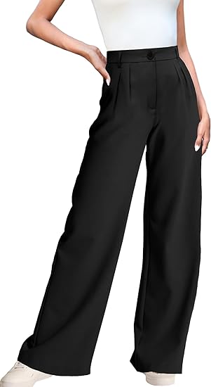 ELLEVEN Women's Casual Wide Leg Dress-Pants, High Elastic Waisted in The Back Business Flowy Trousers with Pockets
