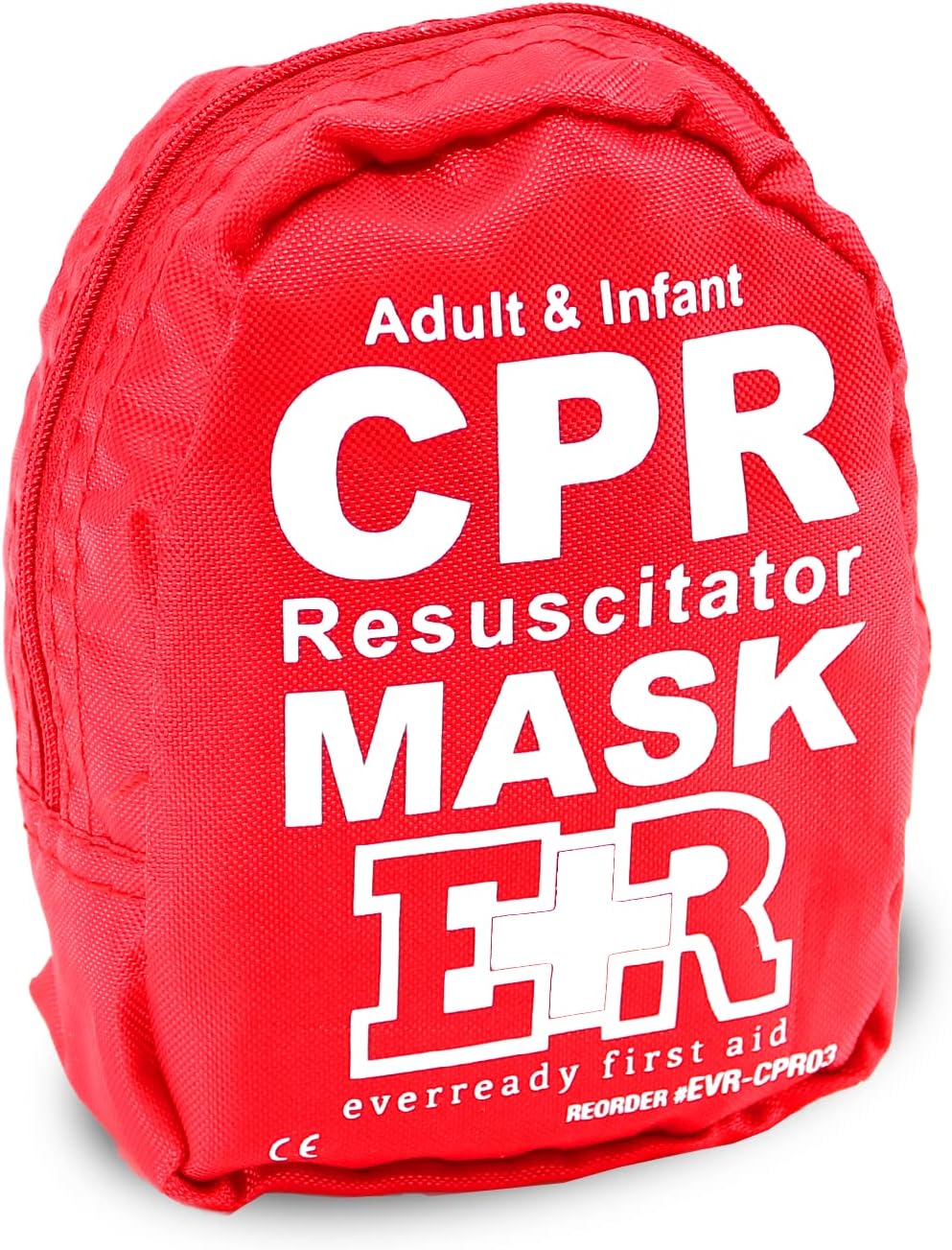 Ever Ready First Aid Adult and Infant CPR Mask Combo Kit with 2 Valves with Pair of Vinyl Gloves & 2 Alcohol Prep Pads - Red