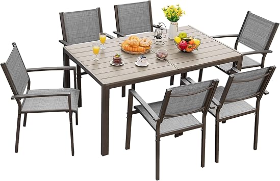 Flamaker Patio Dining Set 7 Piece Metal Frame Outdoor Furniture with 6 Textilene Chairs and Rectangular Table Family Kitchen Conversation Set for Backyard, Lawn (Grey)