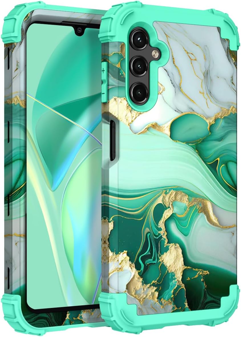 Hocase for Galaxy A14 5G Case, Heavy Duty Shockproof Protection Soft Silicone Rubber Bumper+Hard Plastic Hybrid Protective Case for Samsung Galaxy A14 5G (6.6" Display) 2023 - Teal Flowers