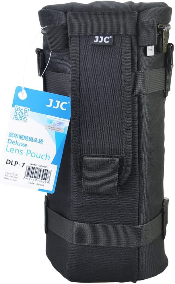 JJC Deluxe Lens Pouch is designed to carry a typical SLR lens. This pouch features heavy duty nylon construction with a soft interior. It provides you great protection and shock absorption for your lens. The pouch can be carried by a double touch belt loop, two webbed eyelet loops or two D-rings for an optional shoulder strap. This series lens pouch is available in 7 sizes to fit a wide variety of lenses. It has a double-zippered lid with an inside mesh accessory pocket.The two zipper sliders are designed with small loops, thus you can lock them together with a small lock for more safety. Its exterior material is water-resistant, so it protects your lens from moisture effectively. Highlights Heavy-duty, water-resistant exterior material Protective interior padding Weather-resistant zippers with pulls Provides great protection and shock absorption for your lens Mesh pocket inside lid for lens cap, body cap, etc. Lightweight and sturdy Provides 3 carrying options Carrying options Rear double touch belt loop Two webbed eyelet loops for a shoulder strap Two D-rings for a shoulder strap (For JJC DLP-5, DLP-6 and DLP-7, package provides a shoulder strap for free) DLP-7 Inner size : 130 x 310mm Model:DLP-7 Inner size is 130 x 310mm, compatible with below lenses: Sigma 150-500mm F5-6.3 DG OS HSM Tamron SP 150-600mm F/5-6.3 Di VC USD Sigma 150-600mm F5-6.3 DG OS HSM | C Sigma 150-600mm F5-6.3 DG OS HSM | S And other lens outside diameter and height below 130x 310mm