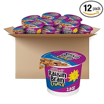 Kellogg's Raisin Bran Crunch Breakfast Cereal Cups, Fiber Cereal, Made with Real Fruit, Original, 33.6oz Case (12 Cups)