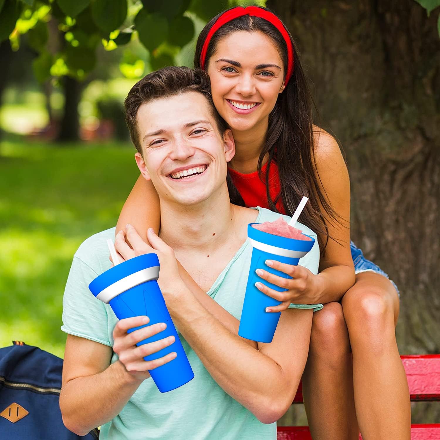 • 【Quick Freeze Slushie Cup】Built-in freezing liquid, transform your favorite drinks (cola,milk and juice) into refreshing slush in just a few seconds. The built-in freezing liquid and ingredients are exchanged for heat and cold to make it delicious and funny.