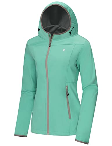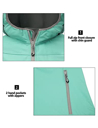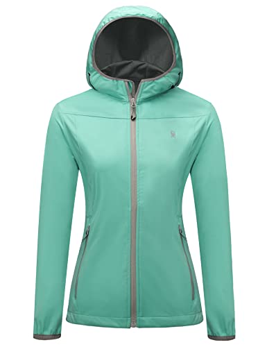 Little Donkey Andy Women's Lightweight Hooded Softshell Jacket for Running Travel Hiking, Windproof, Water Repellent Aqua Green Size L