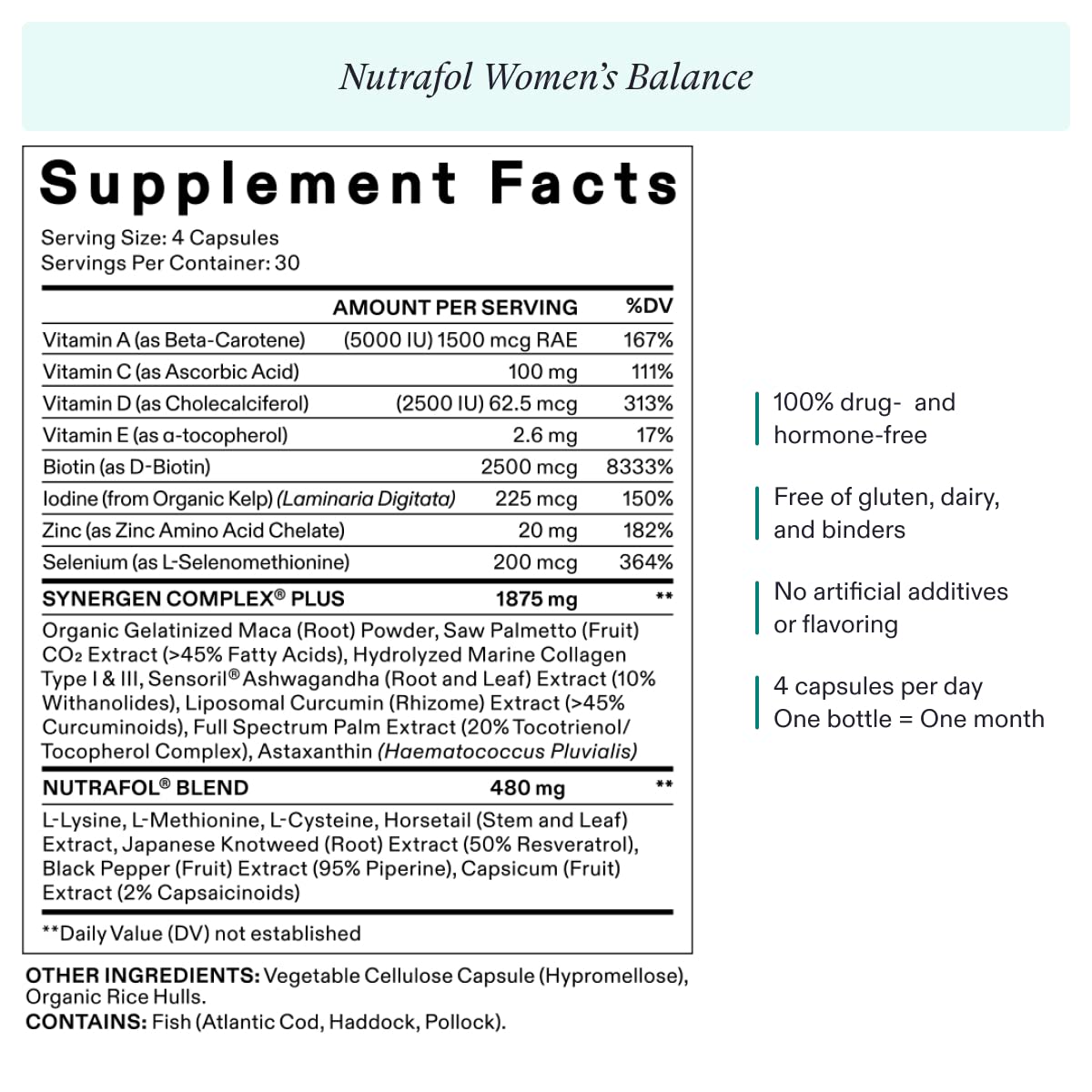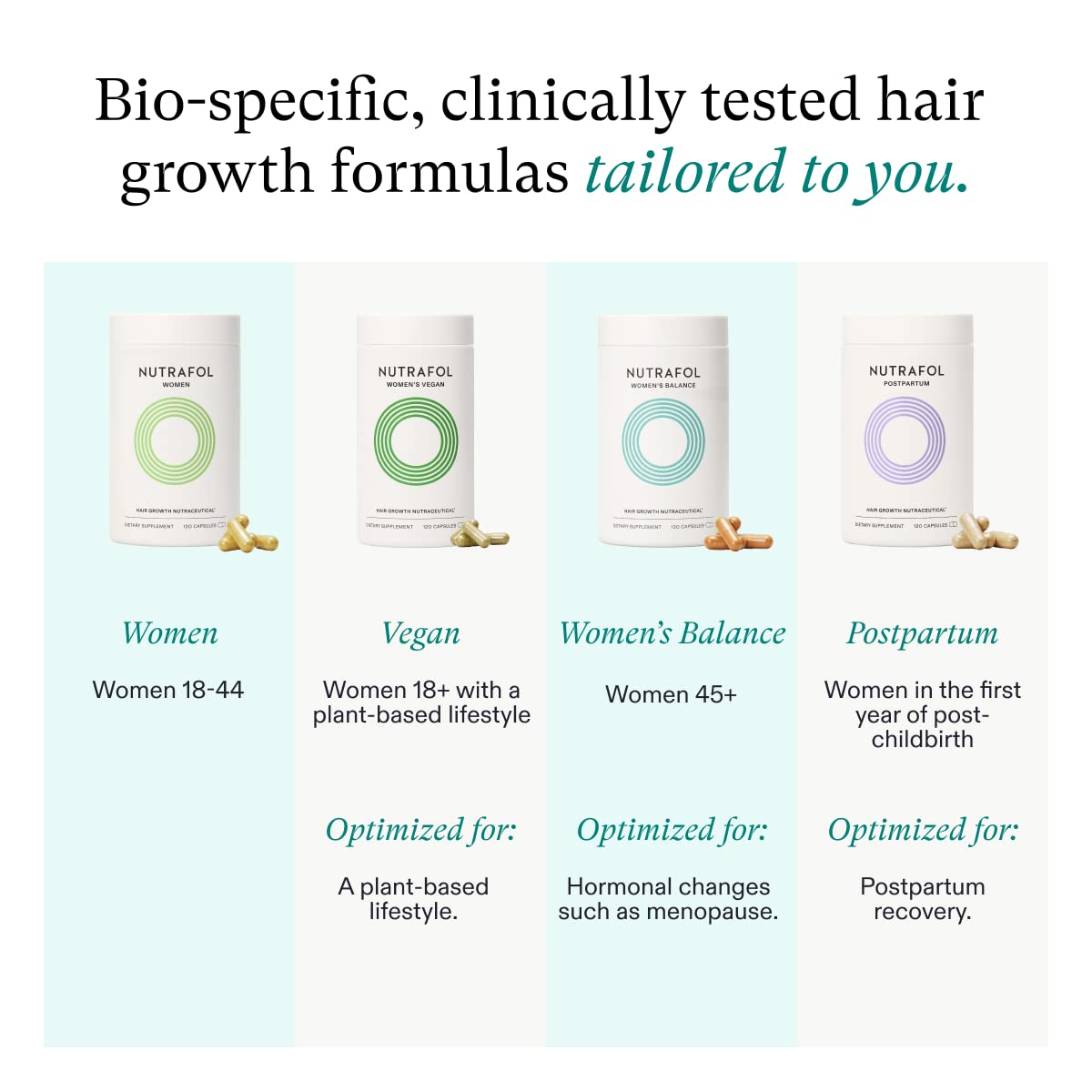 Nutrafol Women's Balance Hair Growth Supplements, Ages 45 and Up, Clinically Proven Hair Supplement for Visibly Thicker Hair and Scalp Coverage, Dermatologist Recommended - 1 Month Supply