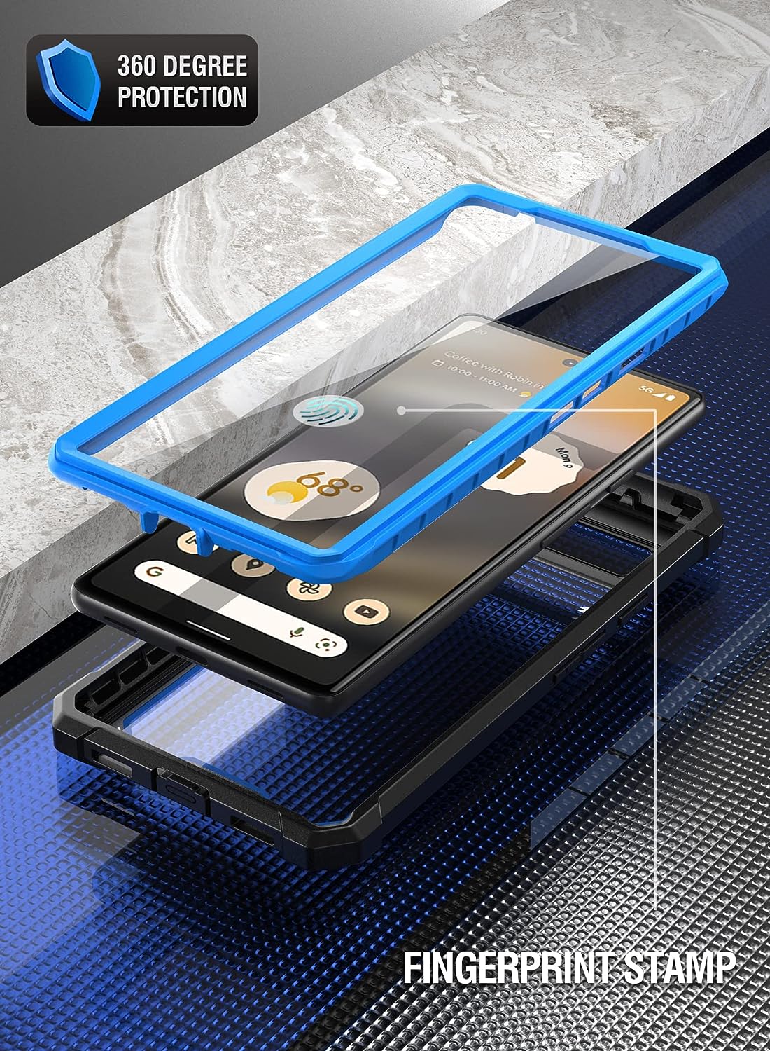 • Google Pixel 6A 5G Case with Screen Protector- Includes: BUILT-IN-SCREEN PROTECTOR with Fingerprint stamp - MAKE SURE REMOVE ANY AIR BUBBLES BETWEEN FINGERPRINT SCANNER AND FINGERPRINT STAMP. Please carefully read FINGERPRINT STAMP TIPS on the DESCRIPTION SECTION and watch INSTALLATION GUIDE VIDEO, follow steps for smooth installation