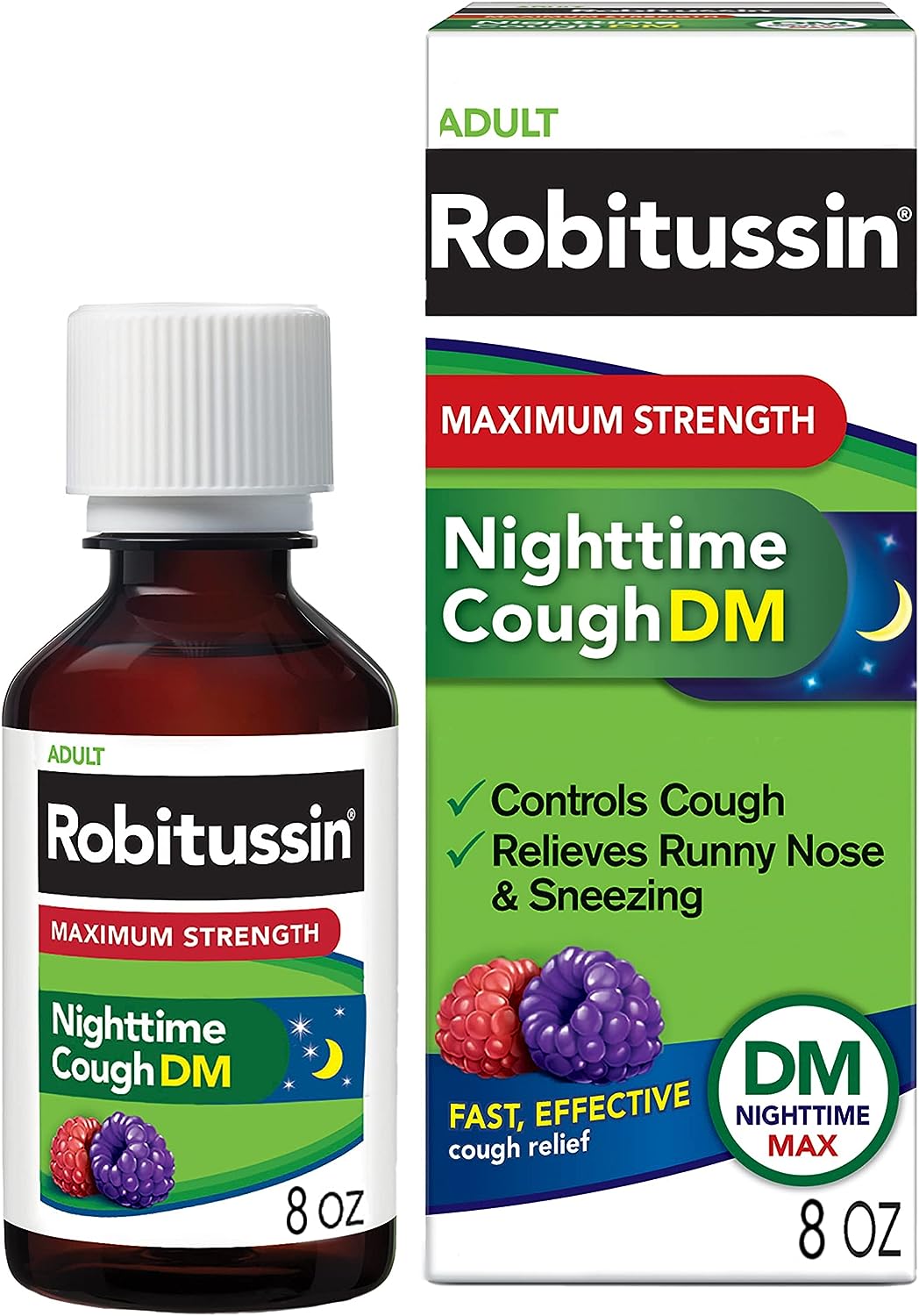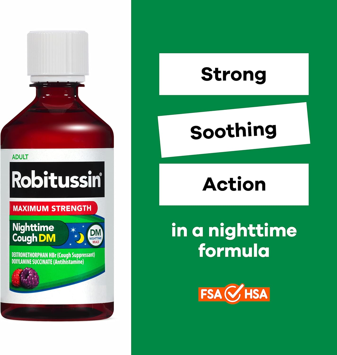Robitussin Maximum Strength Nighttime Cough DM, Cough Medicine for Adults, Berry Flavor - 8 Fl Oz