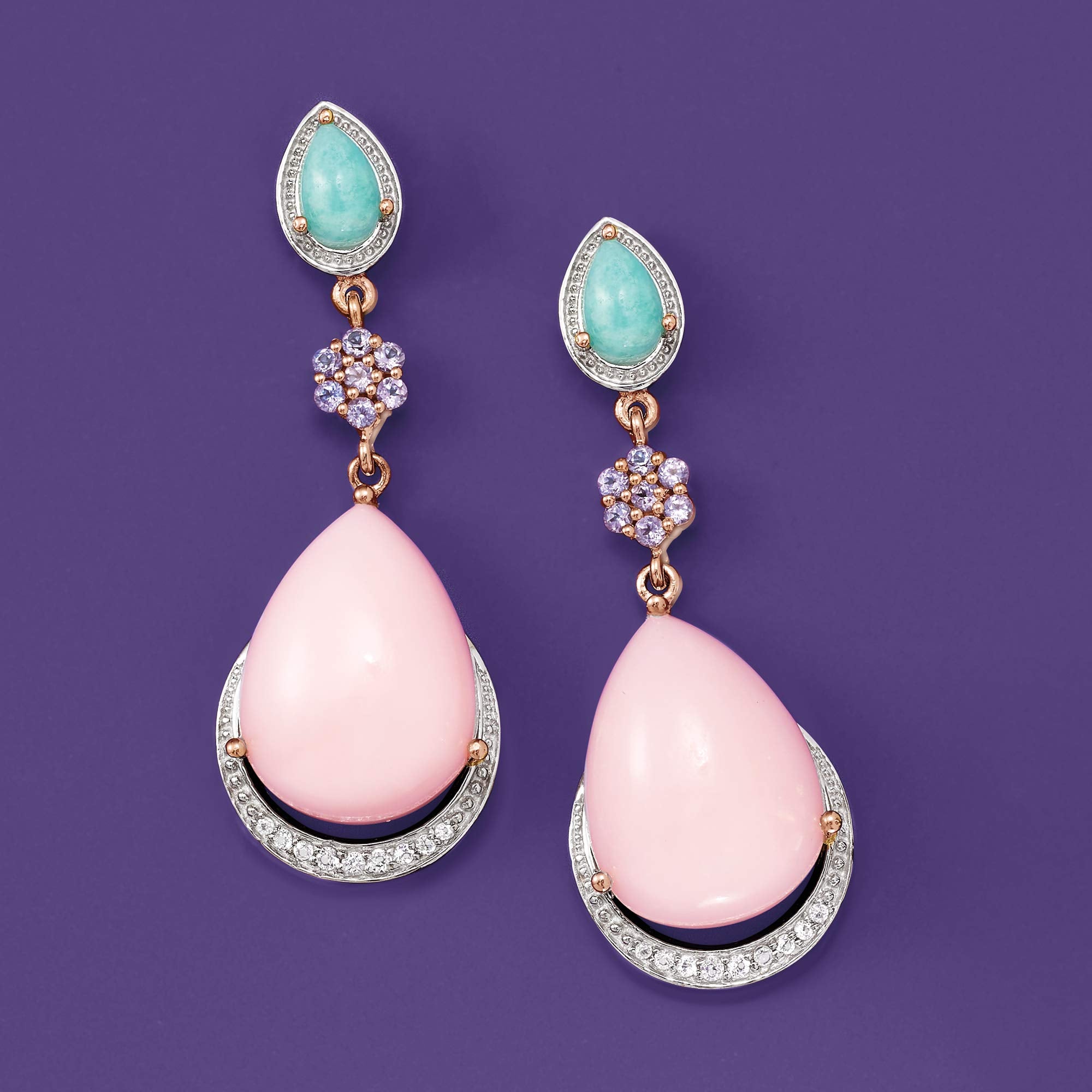 • 18kt rose gold over sterling silver, multi-stone earrings for women.