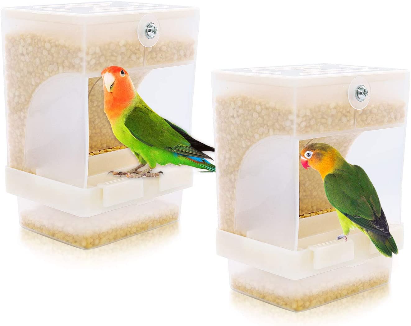 Rypet No Mess Automatic Bird Feeder Transparent Food Container Cage Acrylic Parrot Feeder Accessories for Small Birds Parrot Cockatoo Canary
