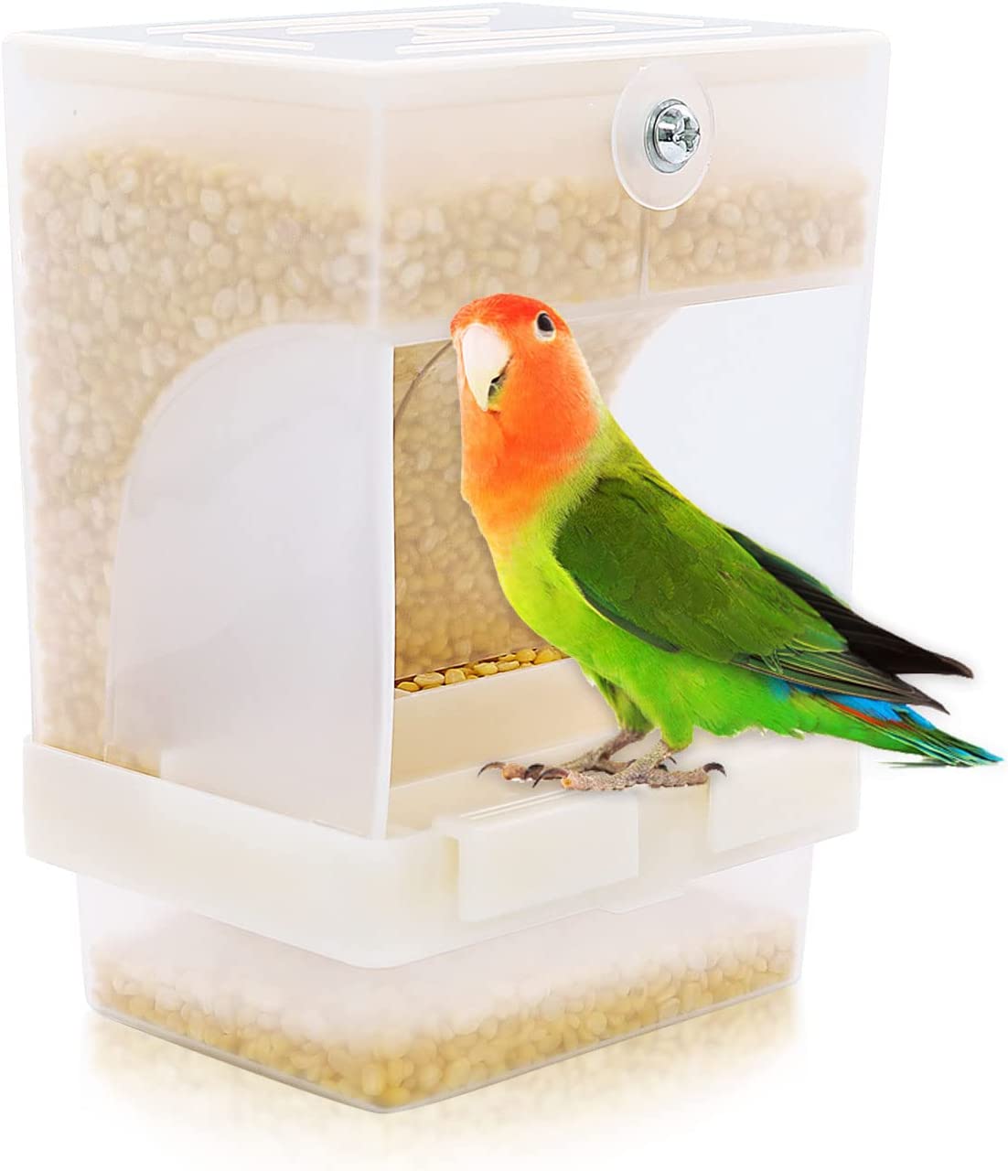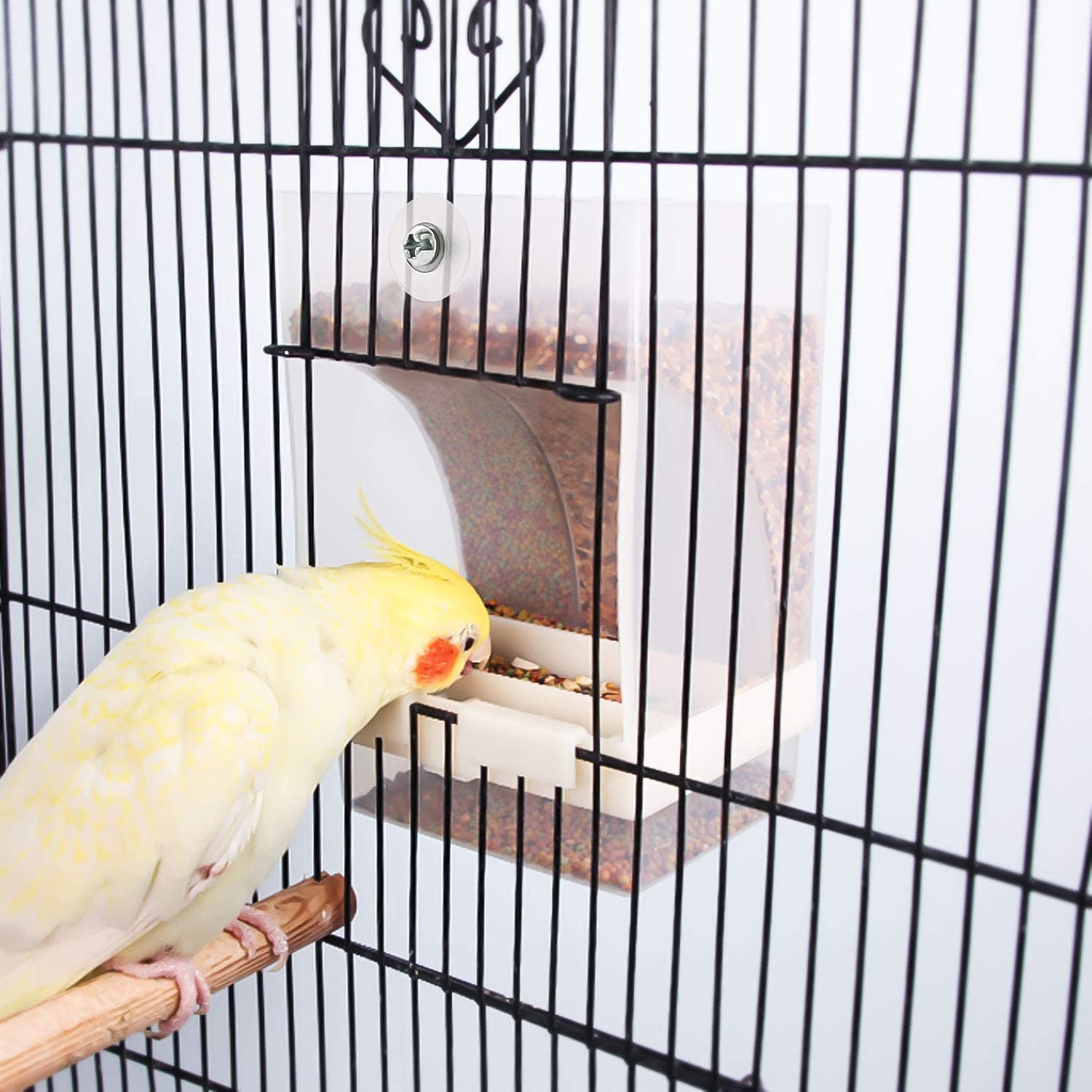 • 【Transparent Material 】 Bird Seed Storage made of high quality acrylic material, durable. The transparent design not only allows you to observe the state of your bird in 360°, but also makes it easier for you to observe the balance of food so that you can replenish it in time.