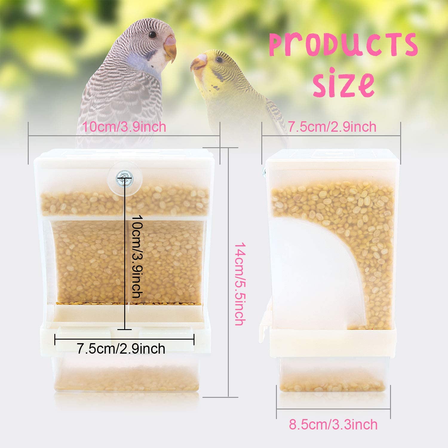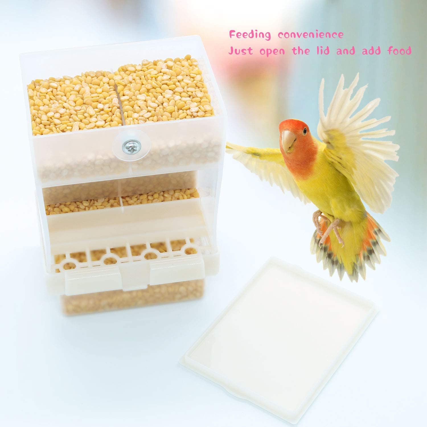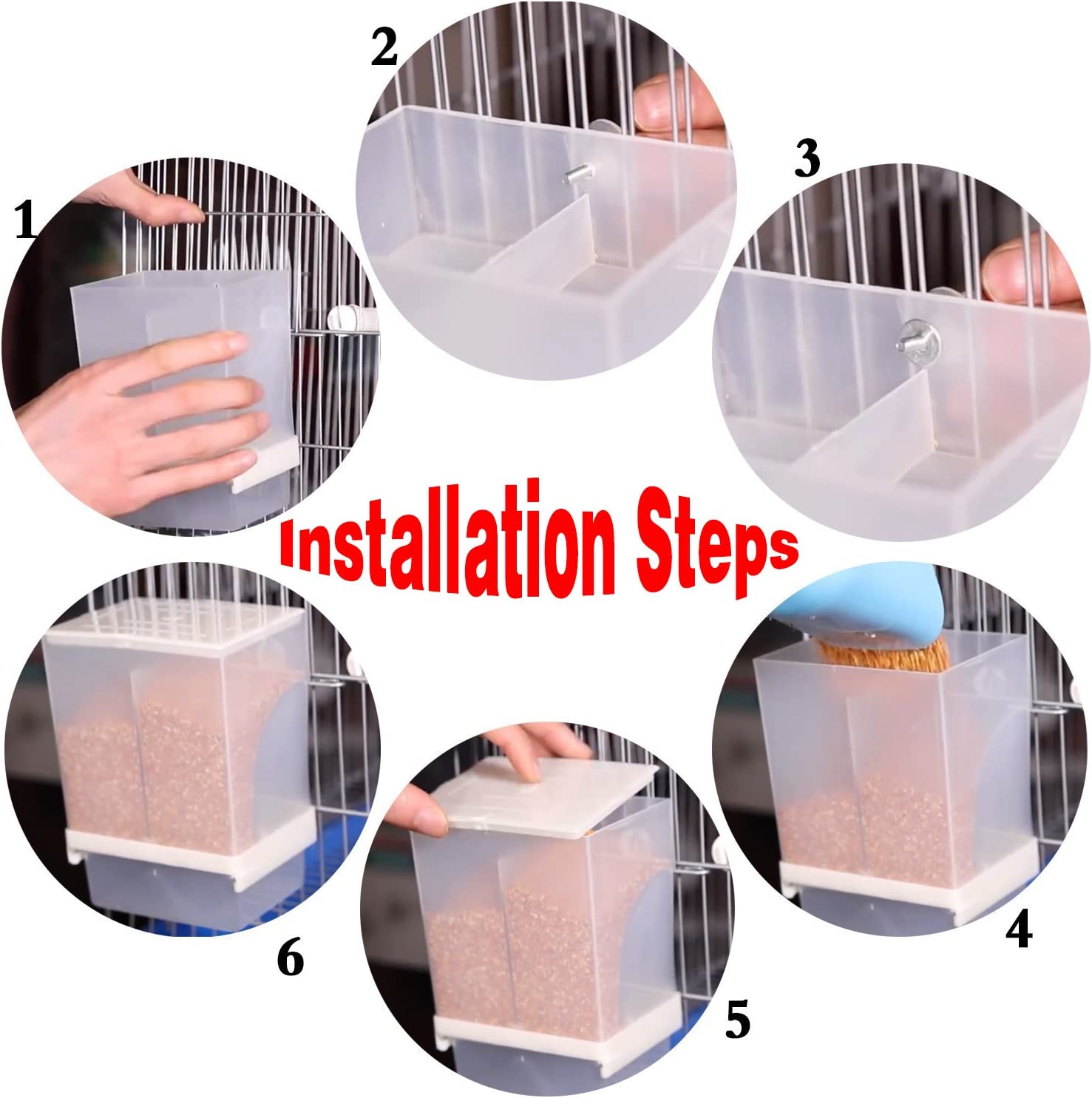• 【Easy and Convenient Installation】: Parakeet feeder no complicated extra installation steps, you just need to fix it on the cage with the matching screws, you can give your love bird a perfect gift. The automatic bird feeder can be fixed outside or inside the cage, and the top cover can be opened directly to add food without removing it.