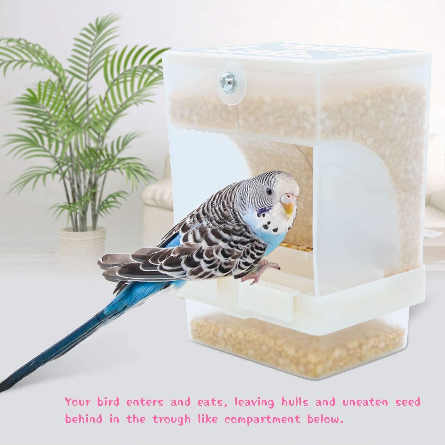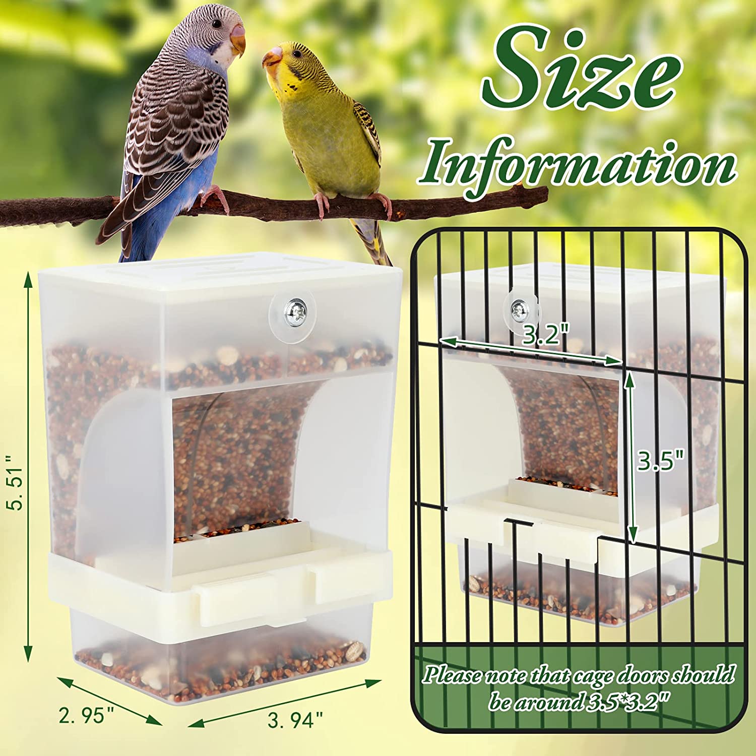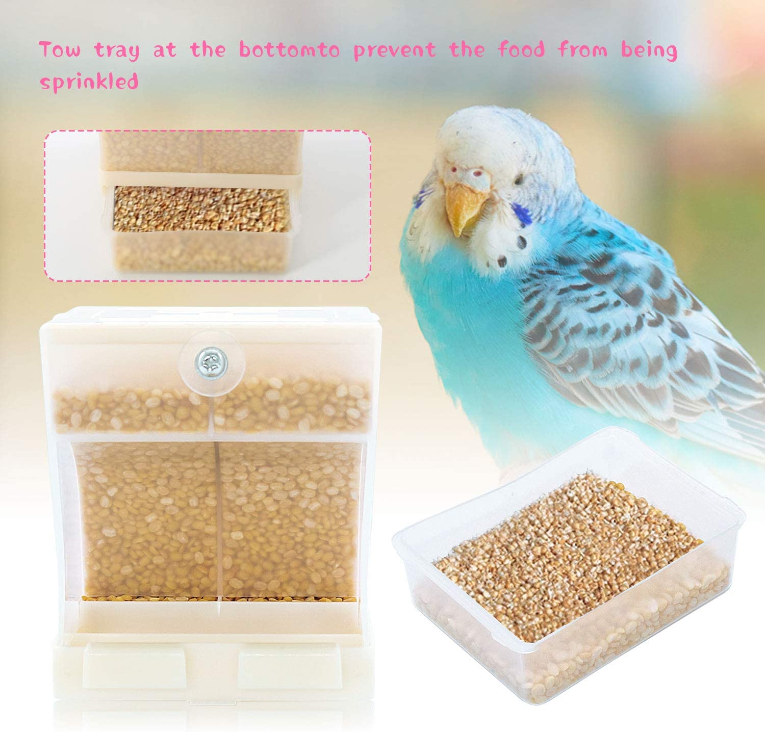 • 【No Mess Bird Feeder Food Container】Your bird comes in to eat the seeds, the husks and uneaten seeds will be left in the compartment below. This will not dirty the bird's cage, and can also avoid waste to the greatest extent. The compartment can hold about 6 ounces of food and does not need to be cleaned every day.