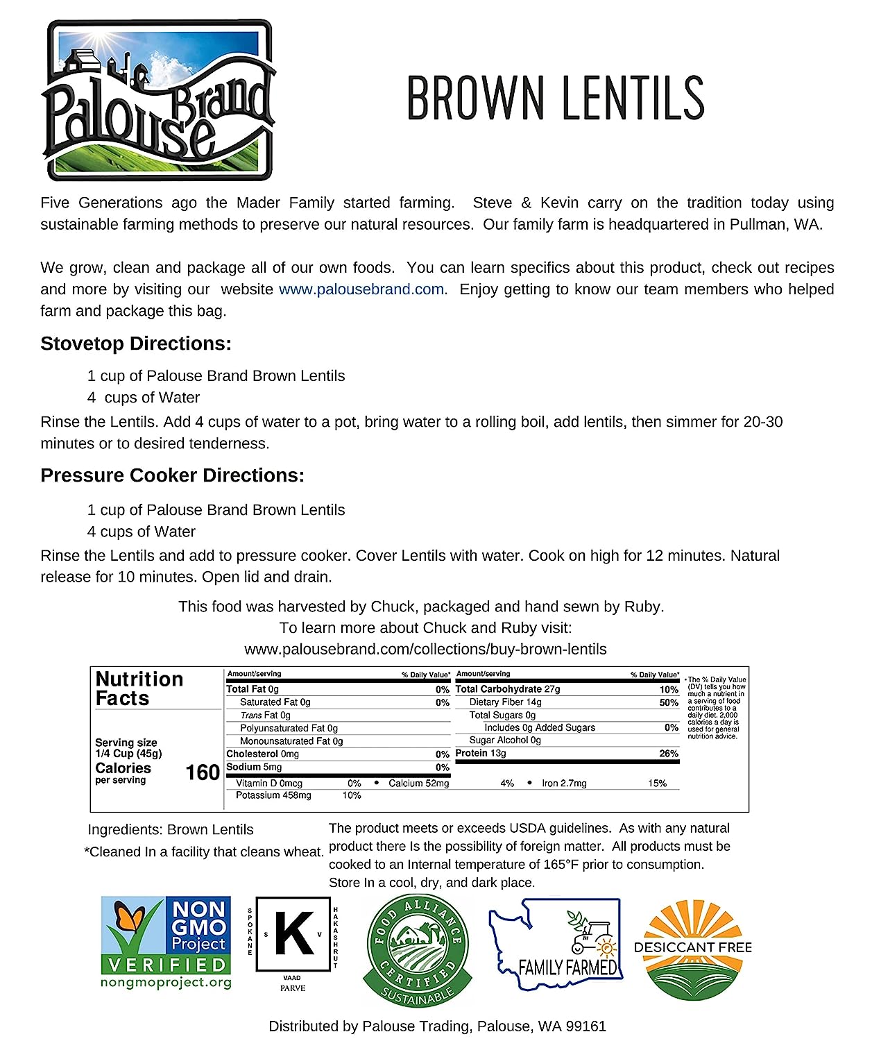 Small Brown Dry Lentils | Family Farmed in Washington State | 100% Desiccant Free | 5 lbs Plastic Free Packaging | Non-GMO | 100% Non-Irradiated | Kosher | Field Traced | Burlap Bag