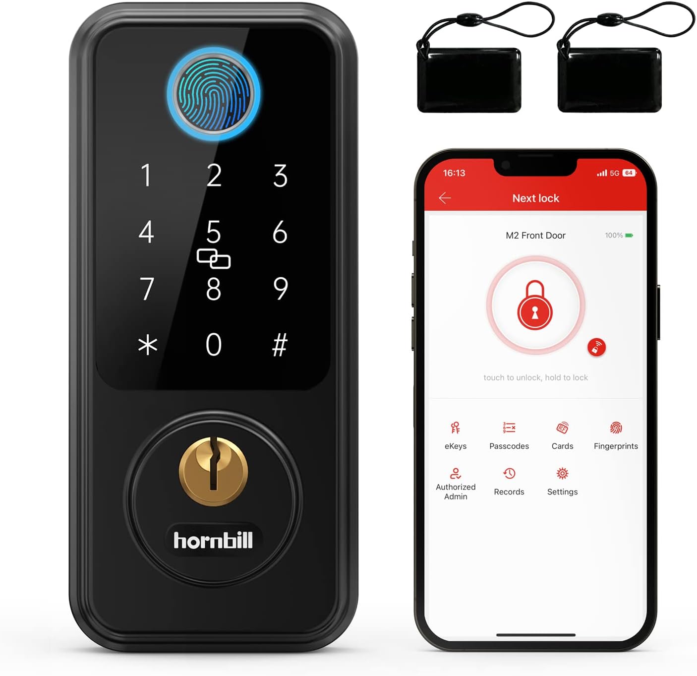 Smart Lock Keyless Entry Deadbolt Door Locks,Hornbill Smart Lock Front Door,Digital Electronic Bluetooth Deadbolt Door Lock Works with APP,Code Auto Lock for Hotel Airbnb Home(Not included G2 Gateway)