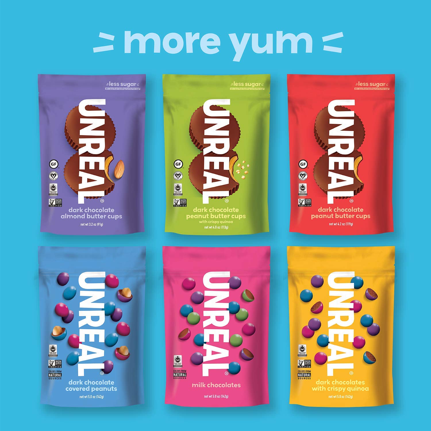 • UNREAL aims to create indulgent snacks with simple, well sourced ingredients and less sugar.